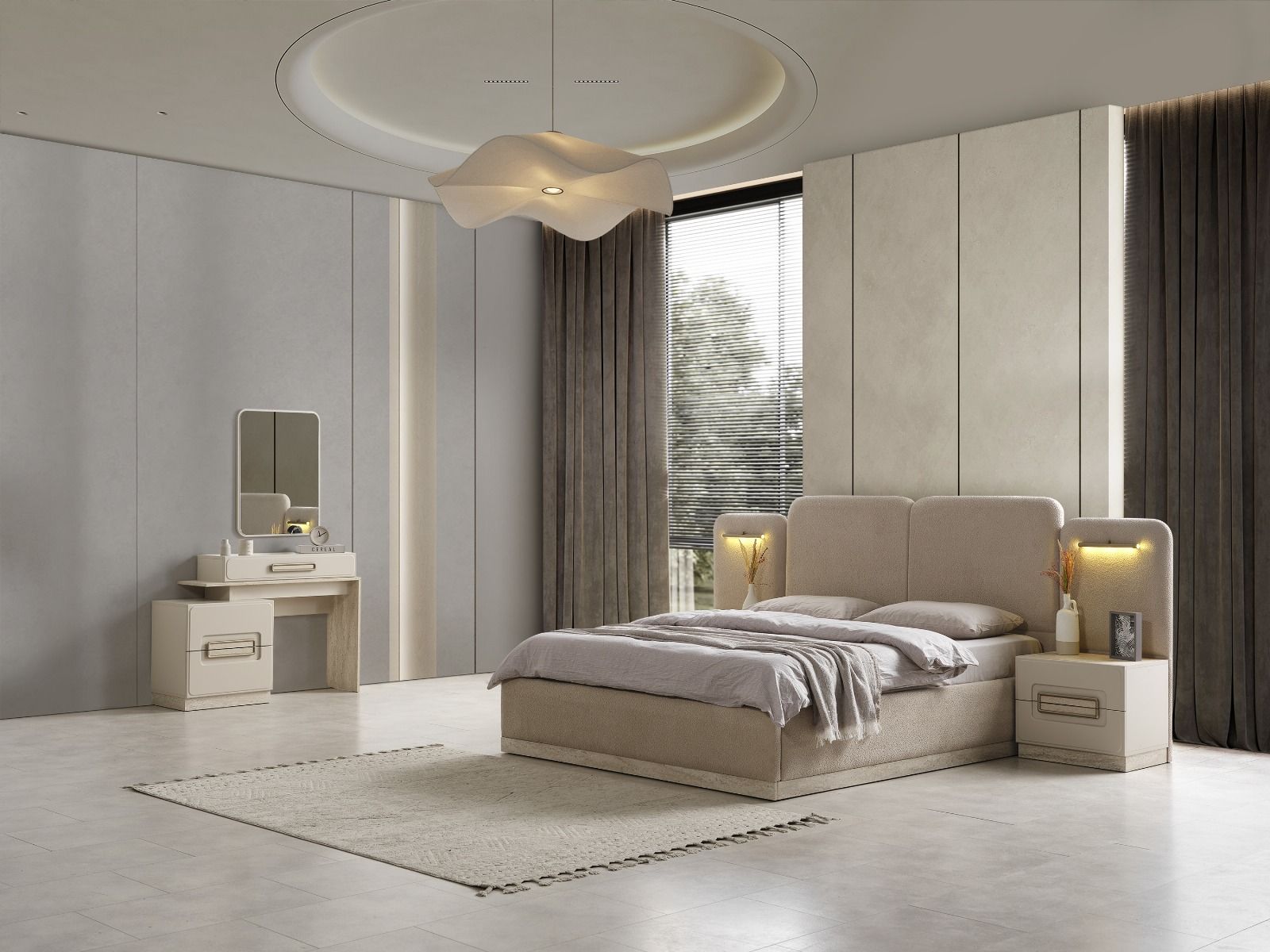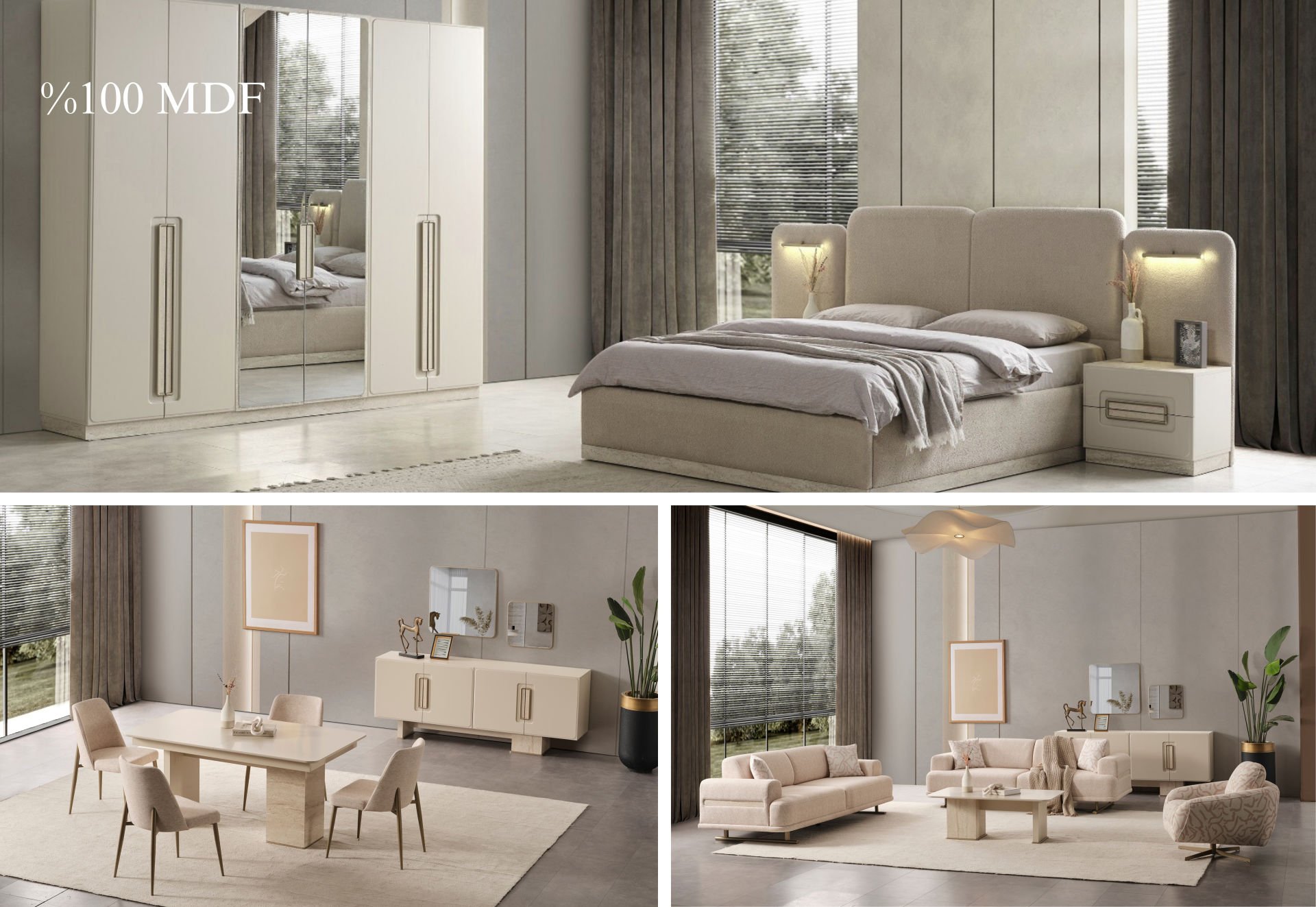 - Akkor Yatak Odası Takımı; Gardolap, Şifonyer + ayna, karyola ve 2 adet Komodin'den oluşmaktadır.