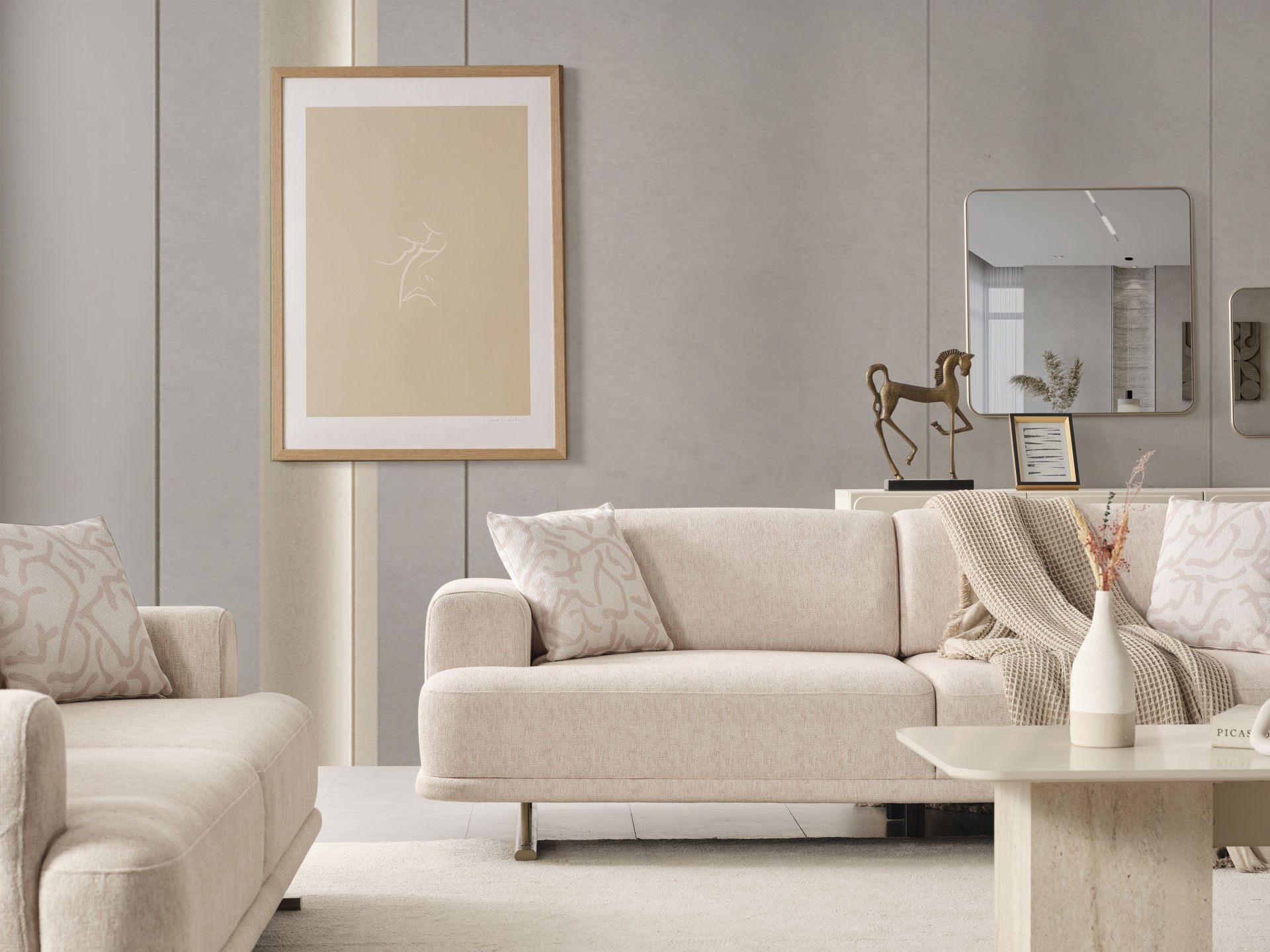 - Akkor Koltuk Takımı içeriği, 2 Adet 3 lü Kanepe ve 1 Adet berjer'den oluşmaktadır.