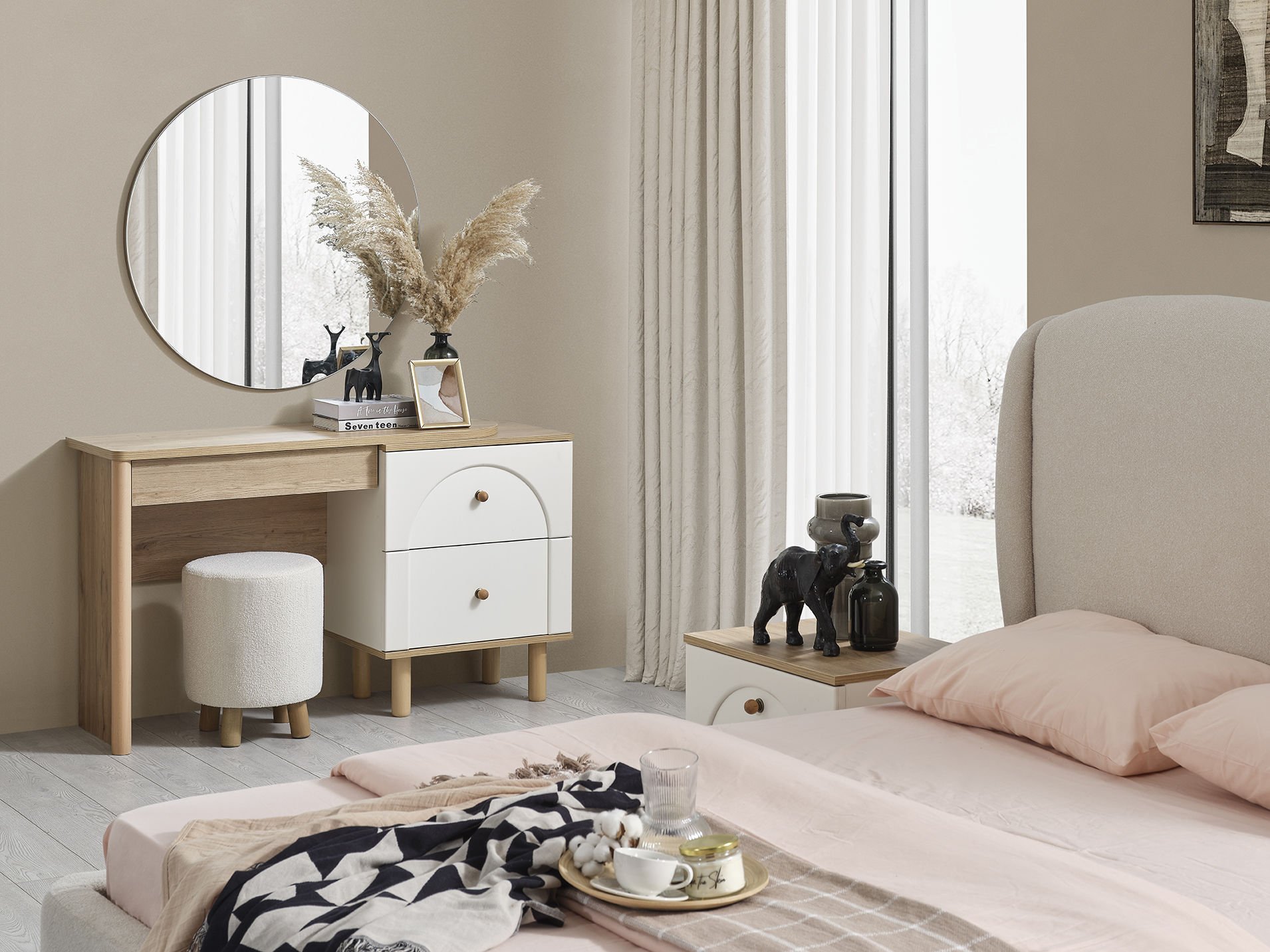 - 4 çekmeceli şifonyer seçeneği mevcuttur. İsteğe bağlı fiyat farkı vererek takıma ekleyebilirsiniz.