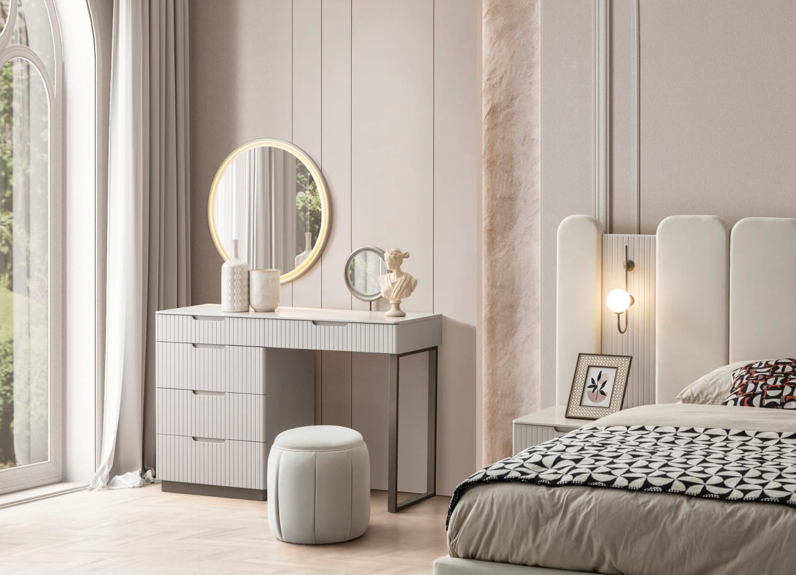 - Arya Yatak Odası Takımı, Gardolap, Şifonyer, Bazalı karyola ve 2 adet Komodin'den oluşmaktadır.