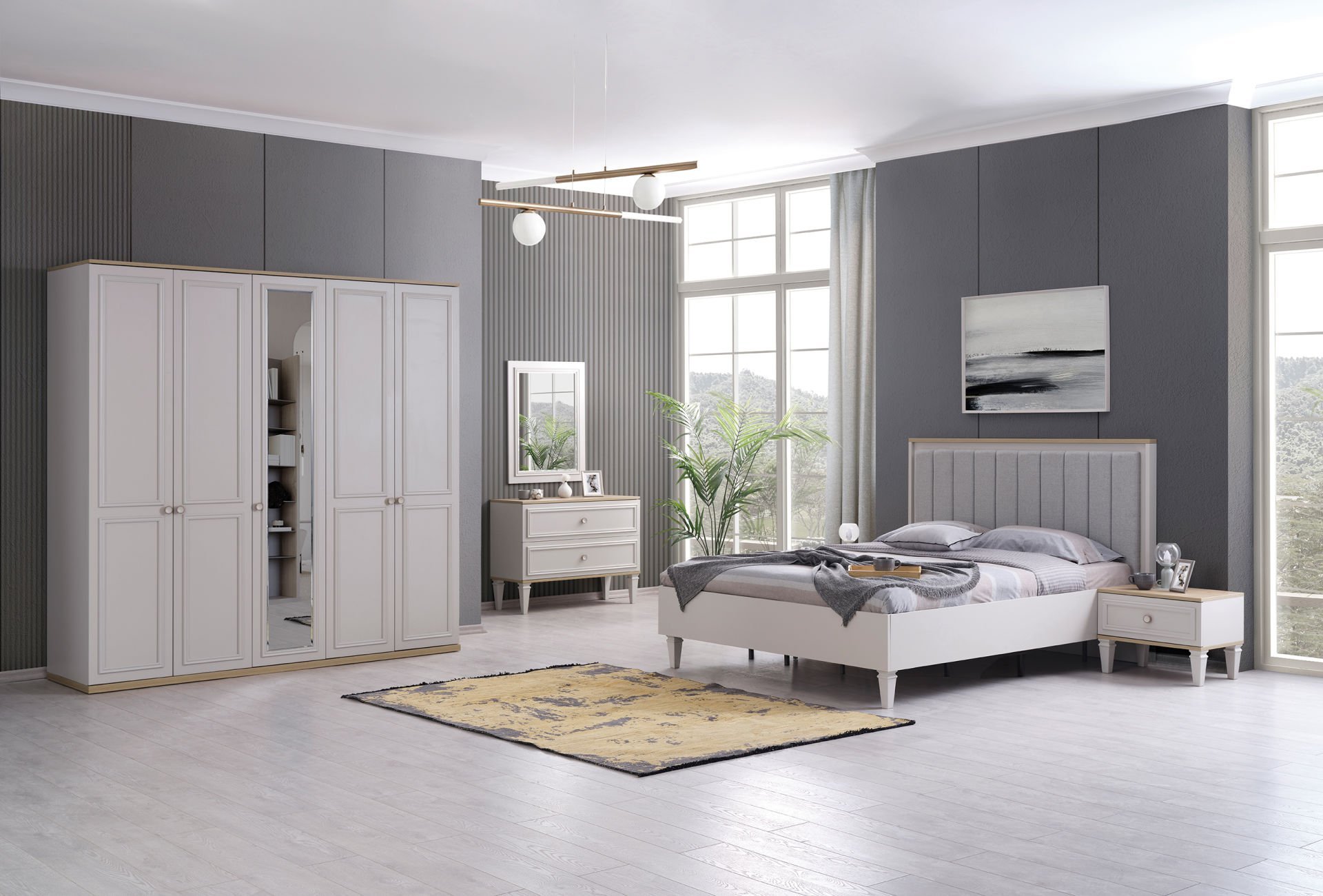 - Batu Yatak Odası Takımı, 5 Kapılı Dolap, Şifonyer, Bazasız karyola başlık ve 2 adet Komodin'den oluşmaktadır.