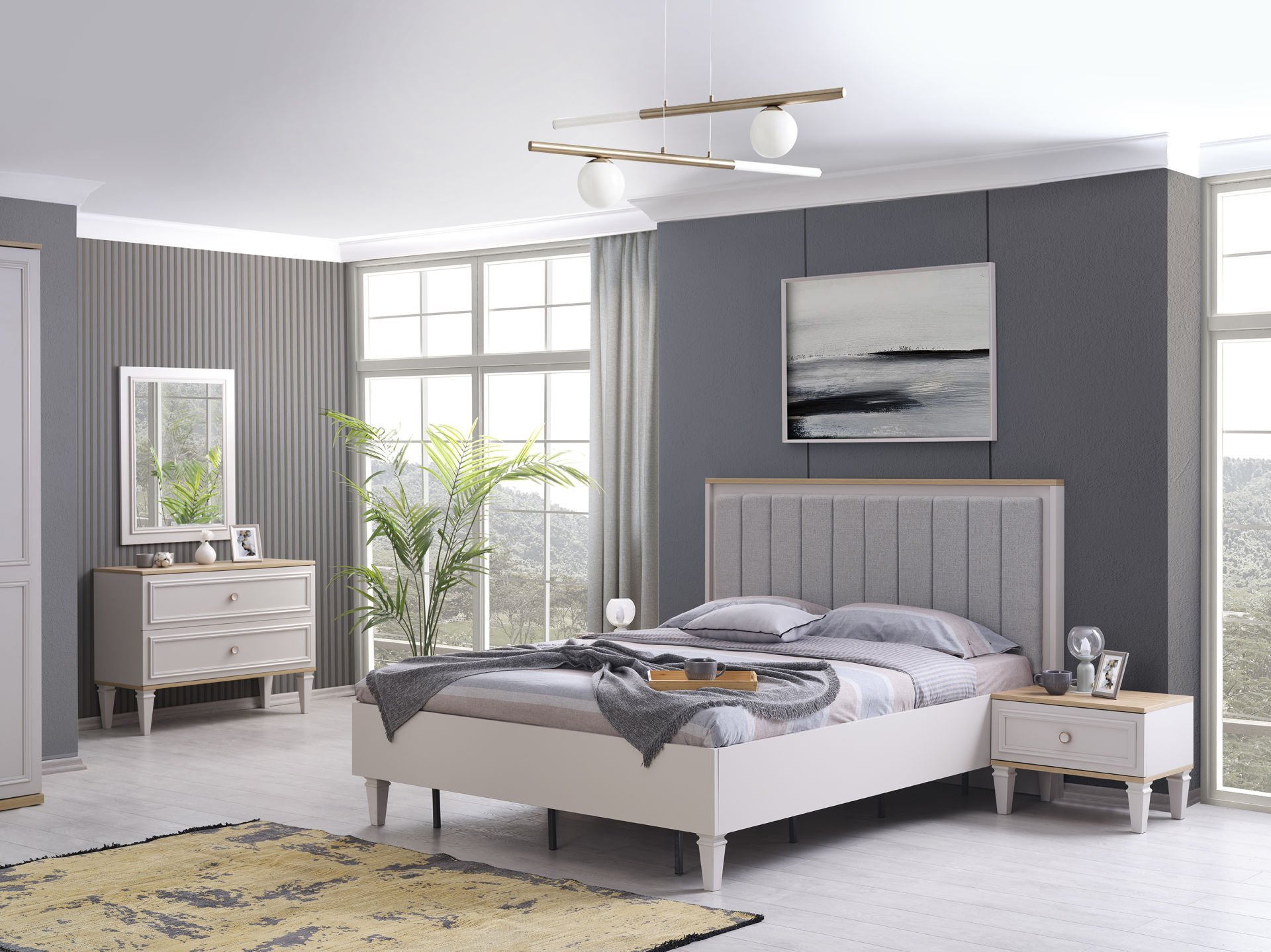 - Batu Yatak Odası Takımı; 5 Kapılı Dolap, Şifonyer + Ayna, Bazasız karyola ve 2 adet Komodin'den oluşmaktadır.