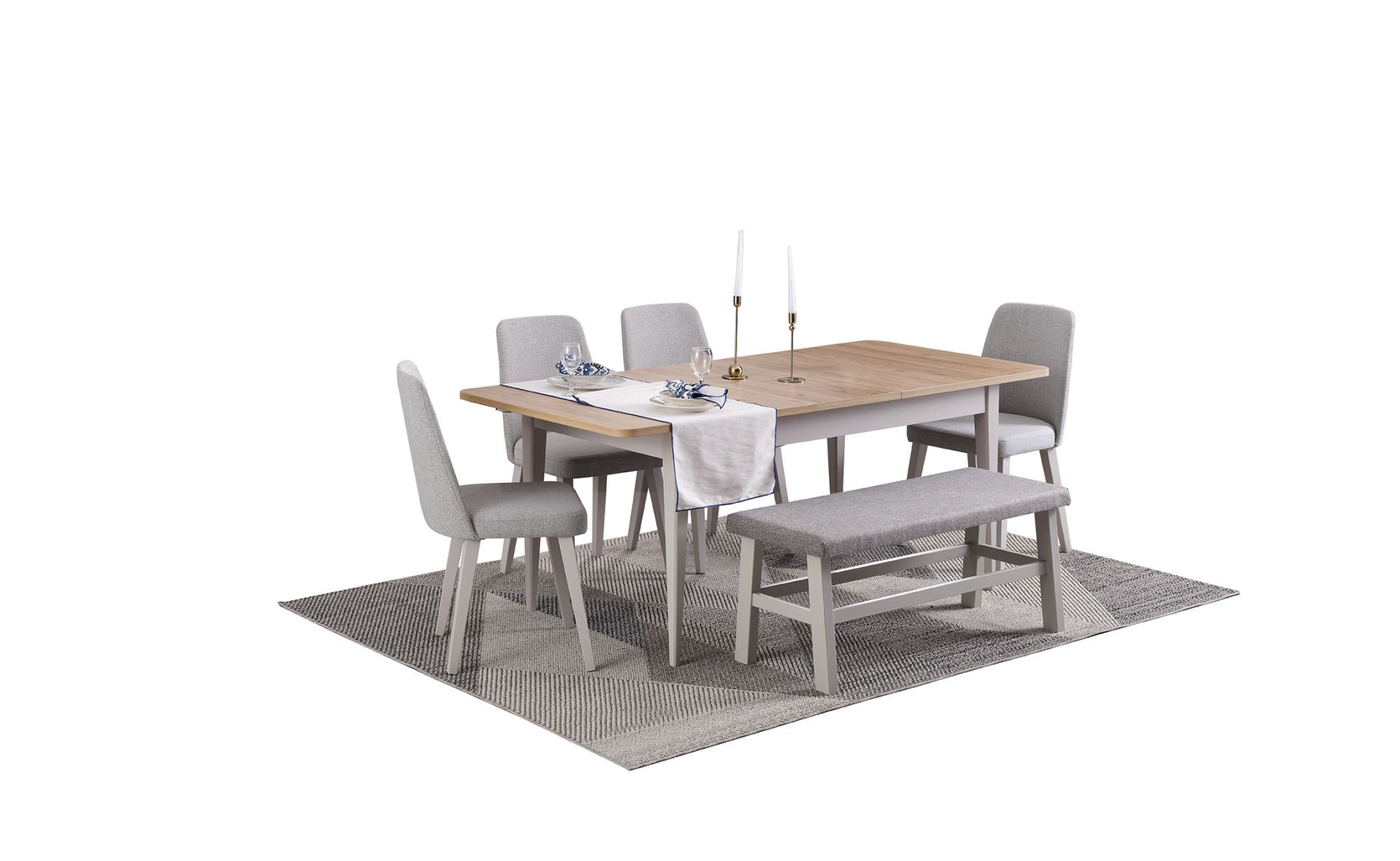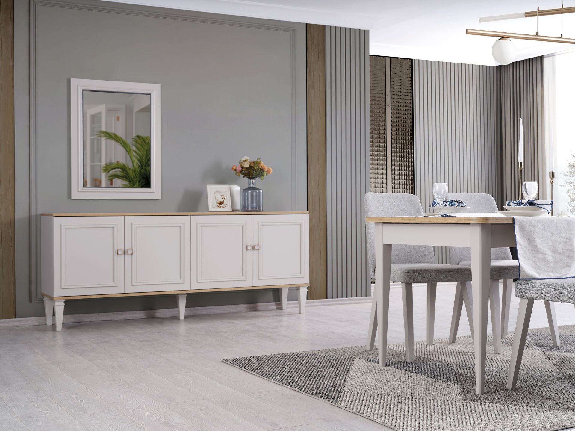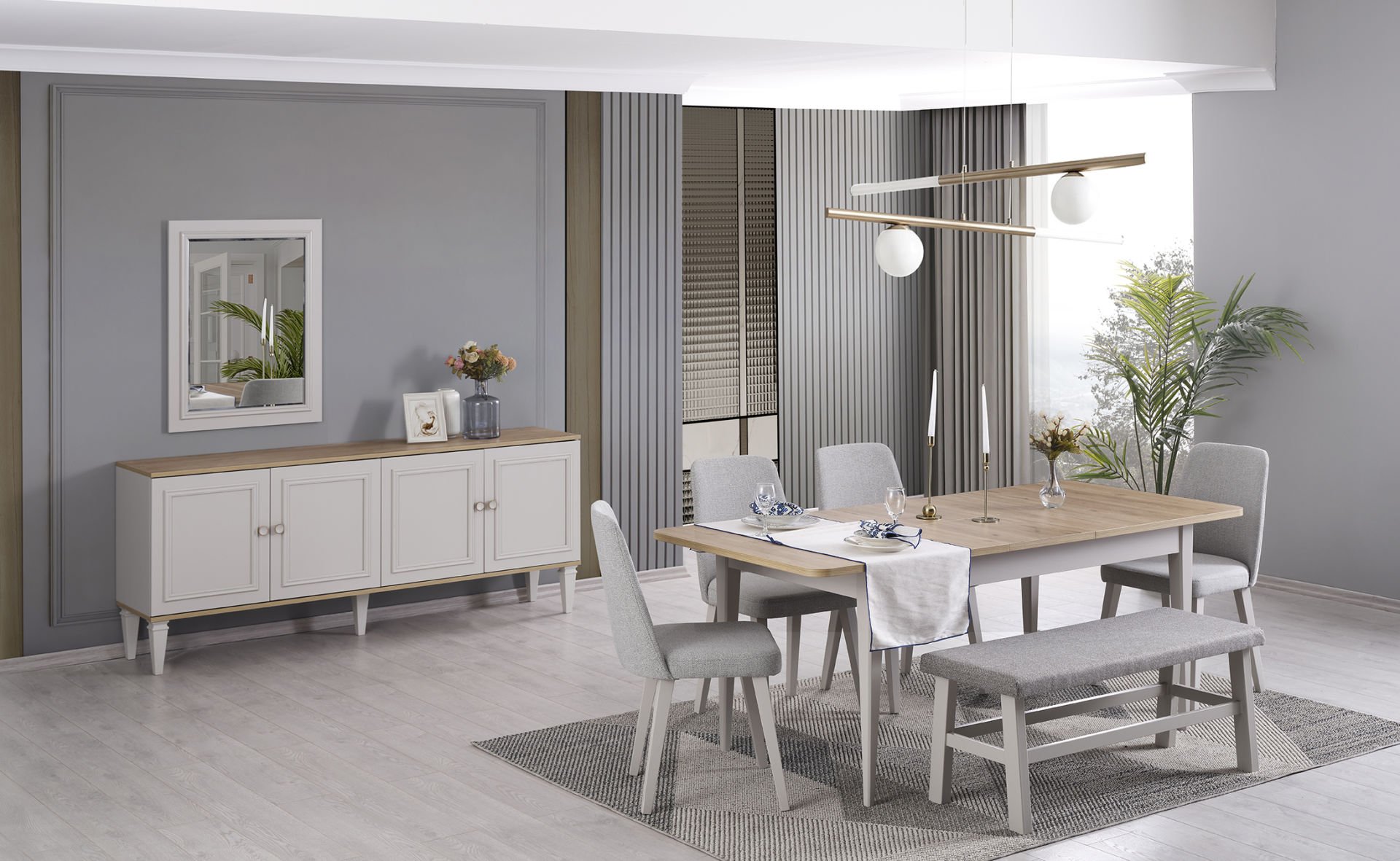 - Batu yemek odası içeriği: 1 Adet Konsol ve aynası,1 Adet Açılır Masa, 4 Adet stock sandalye den oluşmaktadır.15