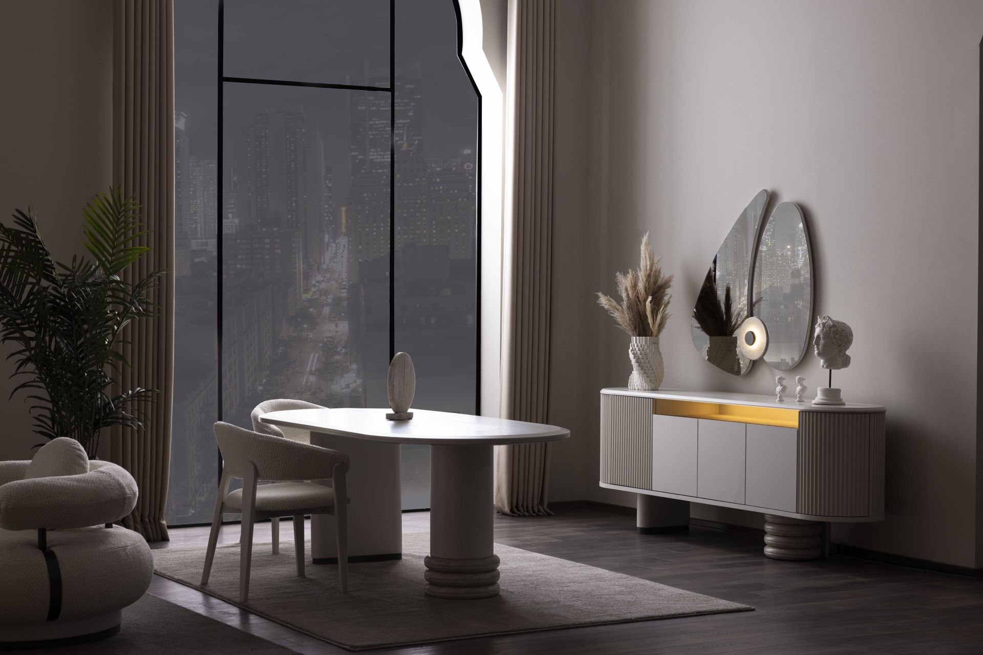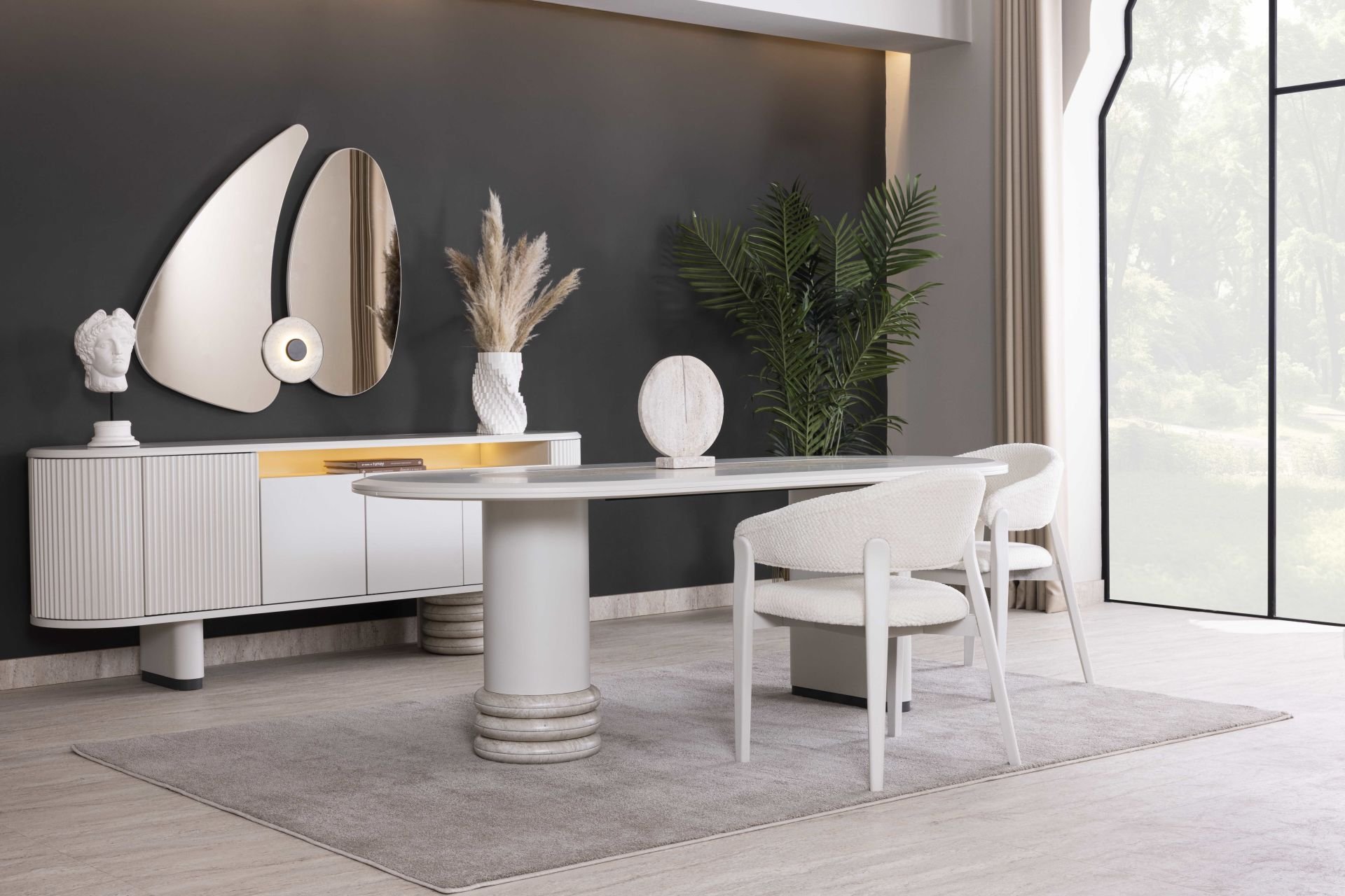 - Belgrad yemek odası içeriği: 1 Adet Konsol + aynası 1 Adet Masa, 6 Adet Sandalye den oluşmaktadır.