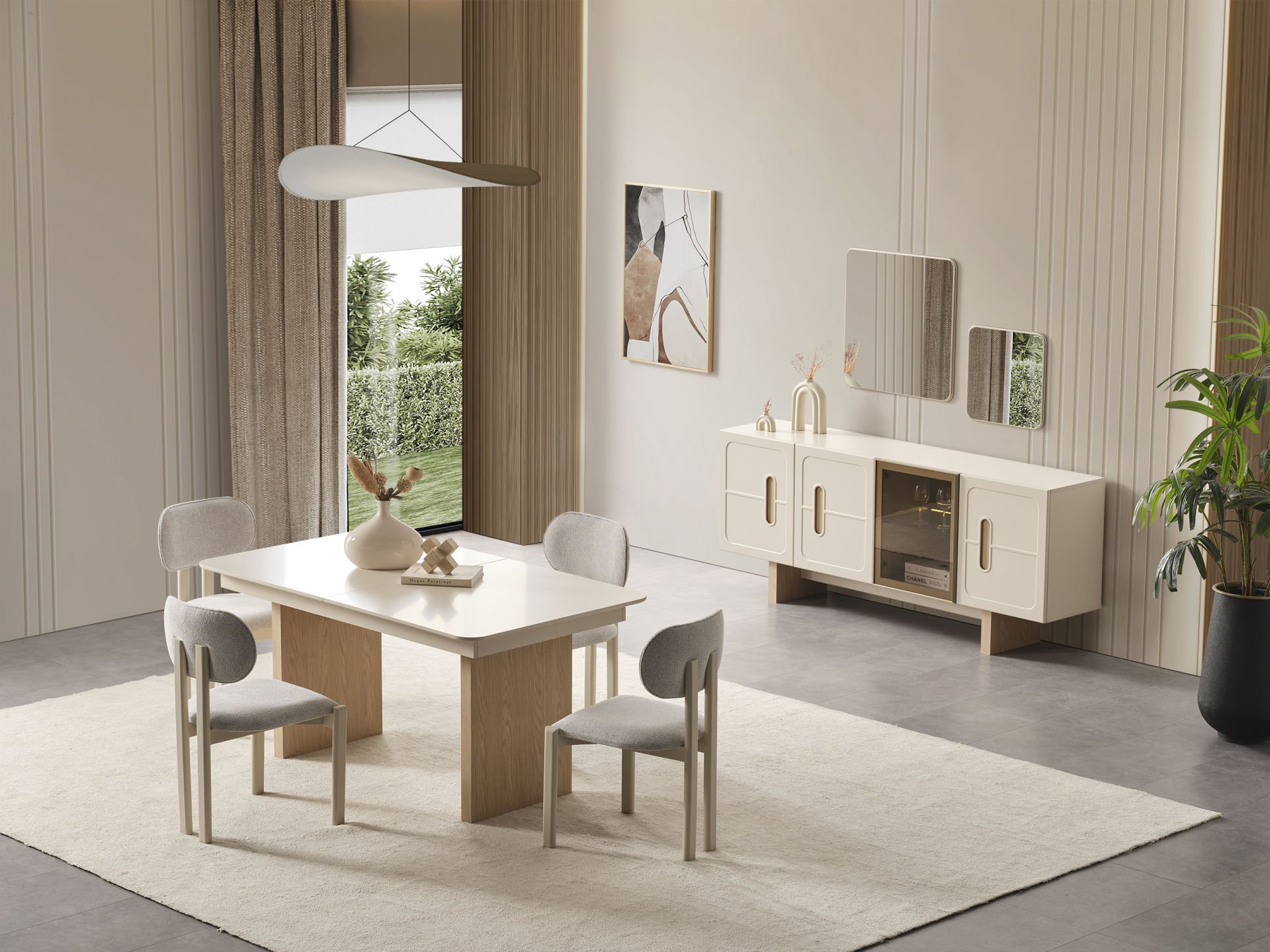 - Capella yemek odası içeriği: 1 Adet Konsol+aynası, 1 Adet Masa, 6 Adet Sandalye den oluşmaktadır.
