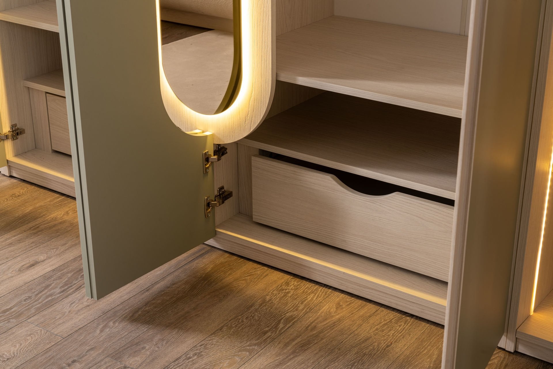 - Dolaplar kapaklıdır. Sürgü kapak seçeneği mevcut değildir.
