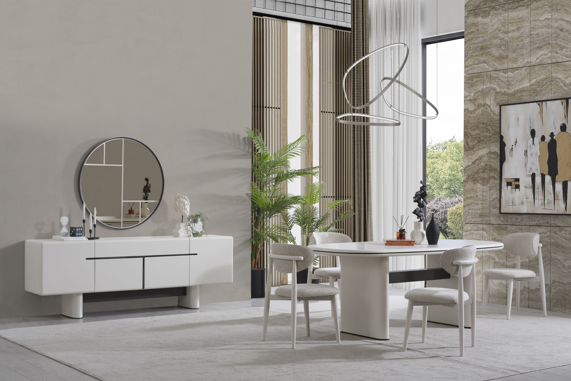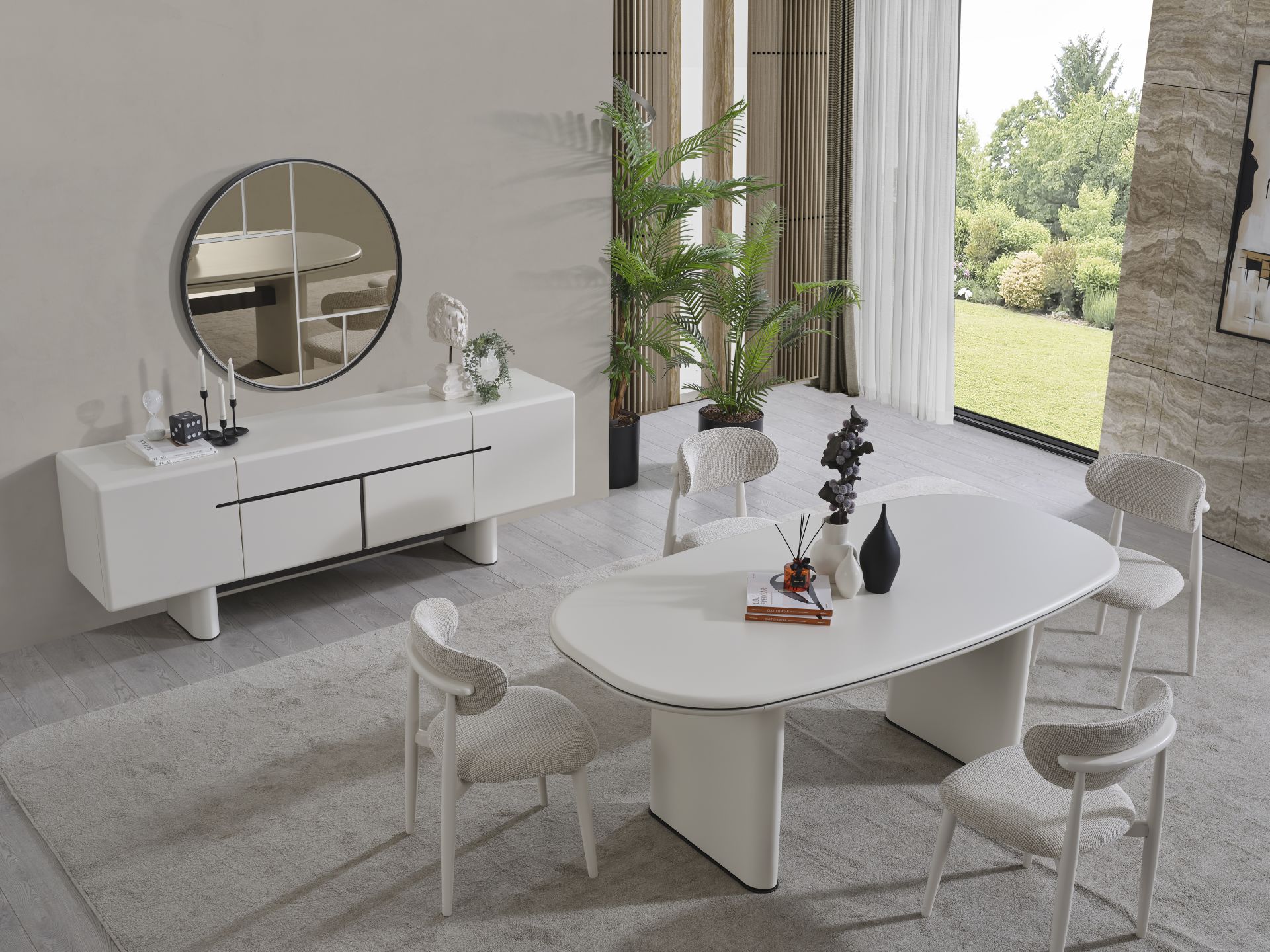 - Dallas yemek odası içeriği: 1 Adet Konsol+aynası, 1 Adet Masa, 6 Adet Sandalye den oluşmaktadır.