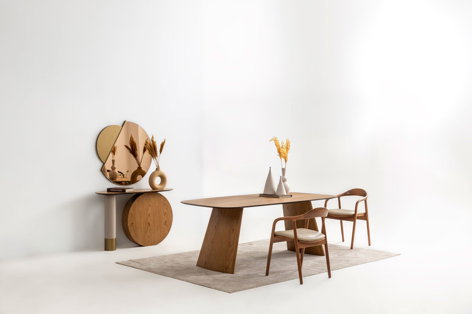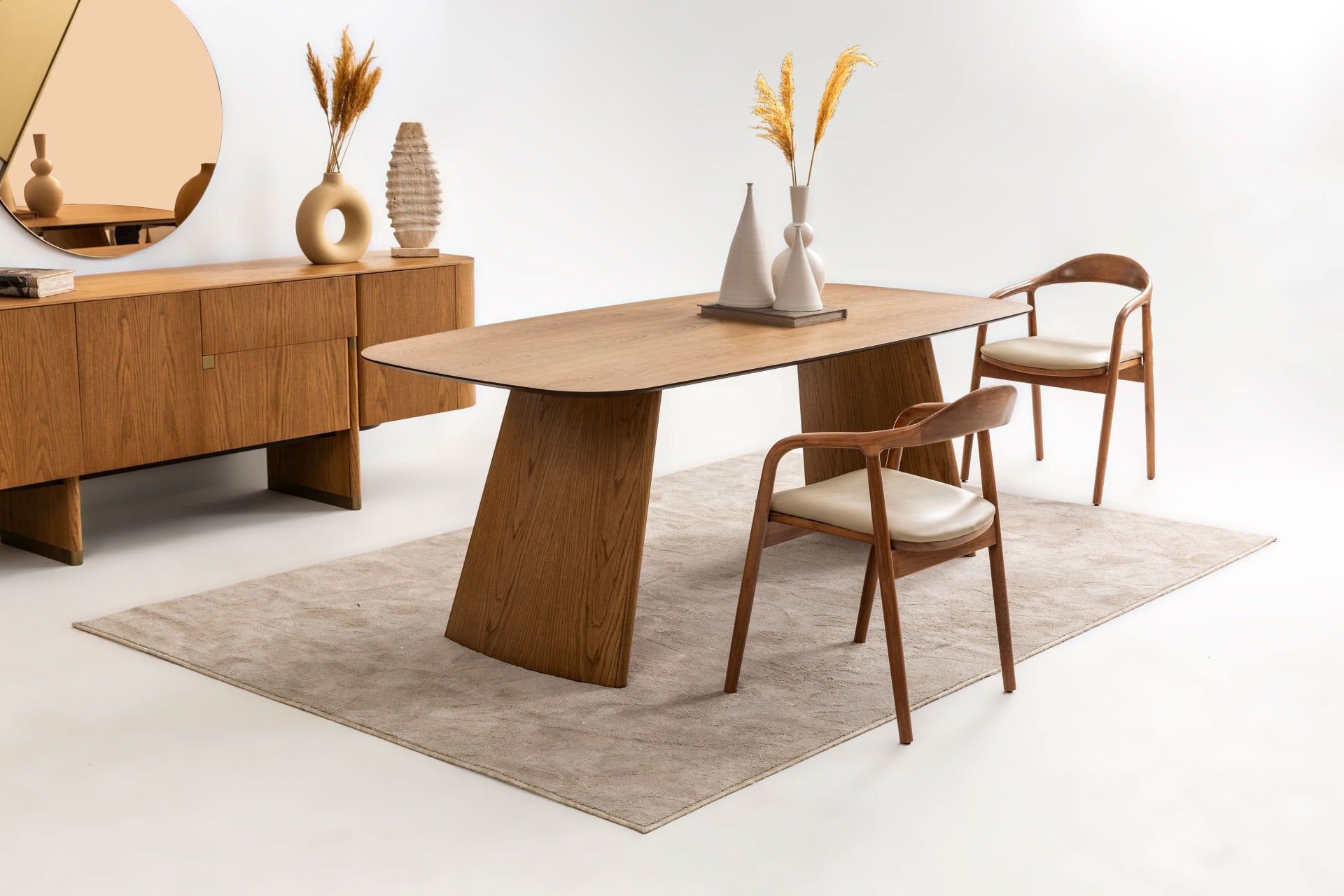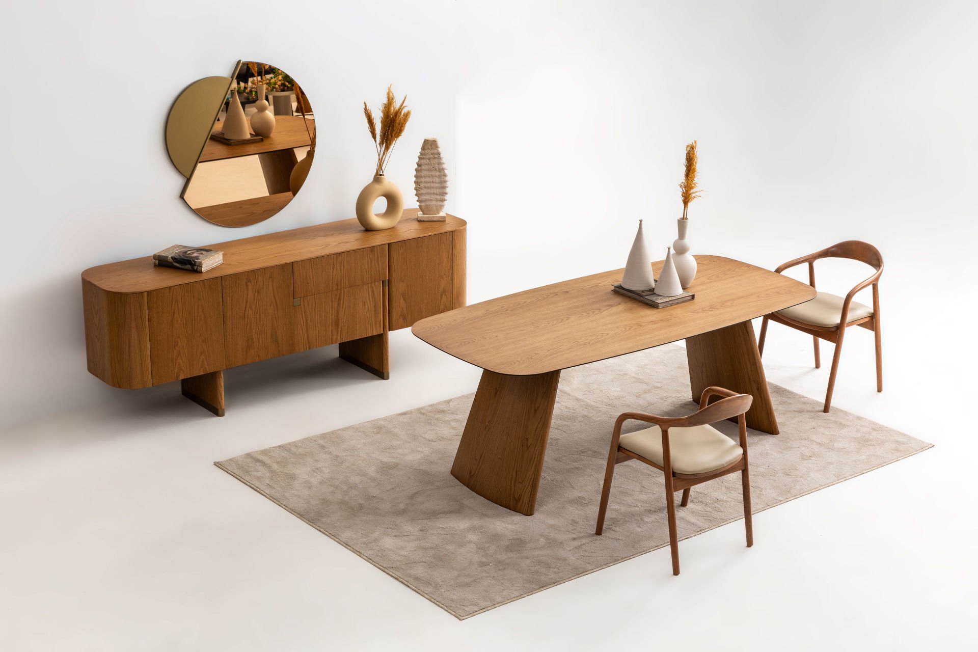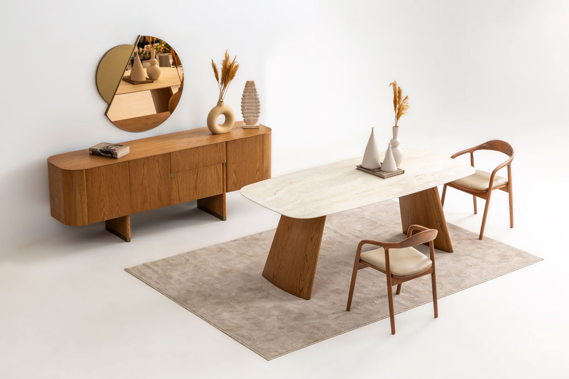 - Delta ceviz yemek odası içeriği: 1 adet konsol+aynası, 1 adet standart masa, 6 adet este sandalye den oluşmaktadır.