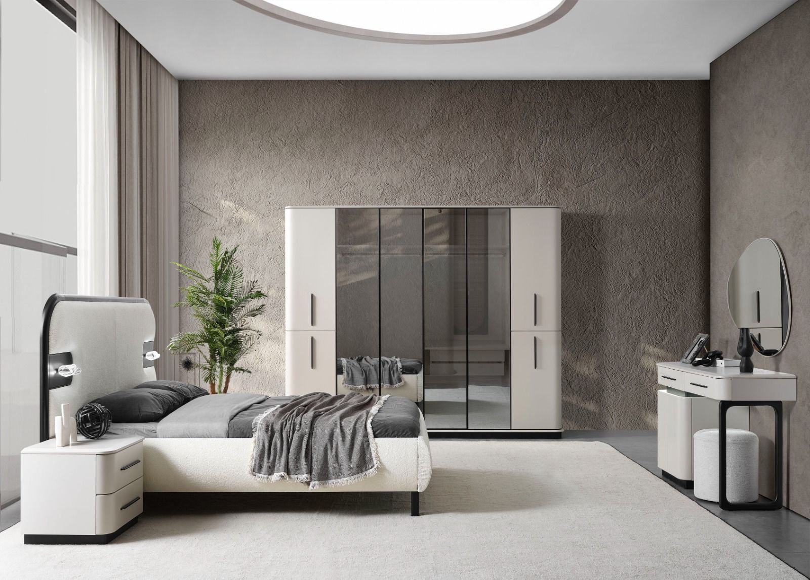 - Destan Yatak Odası, 1 Adet 6 kapılı Dolap, 2 adet komodin, 1 adet bazalı karyola, başlık, 1 adet Şifonyer ve aynasından oluşmaktadır.