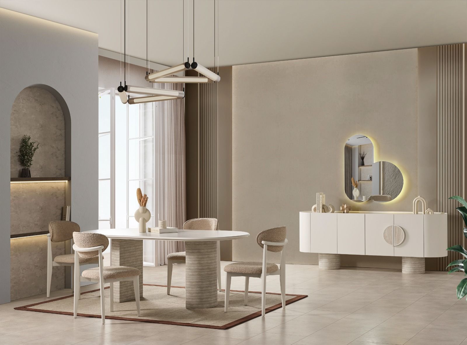 - Dior yemek odası içeriği: 1 Adet Konsol+aynası, 1 Adet Masa, 6 Adet Sandalye den oluşmaktadır.