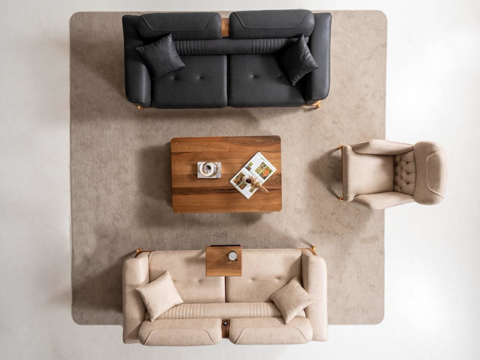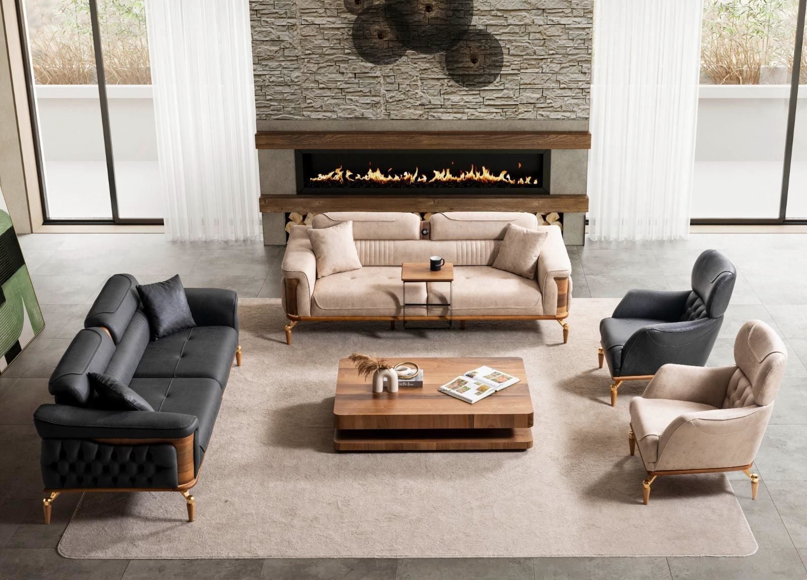 - Dubai Koltuk Takımı içeriği, 1 adet 3'lü sehpalı kanepe, 1 adet sehpasız kanepe ve 1 Adet berjer'den oluşmaktadır.