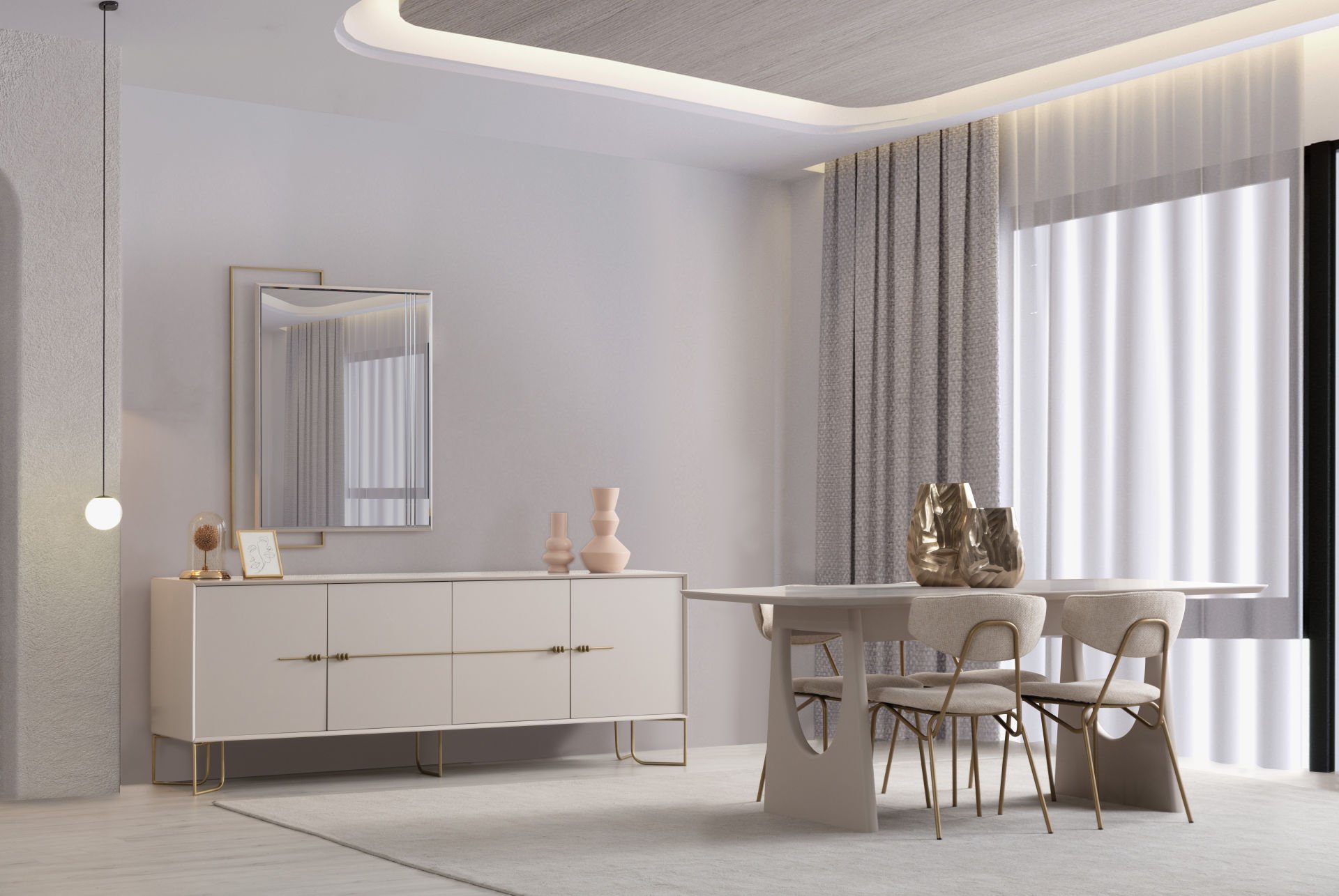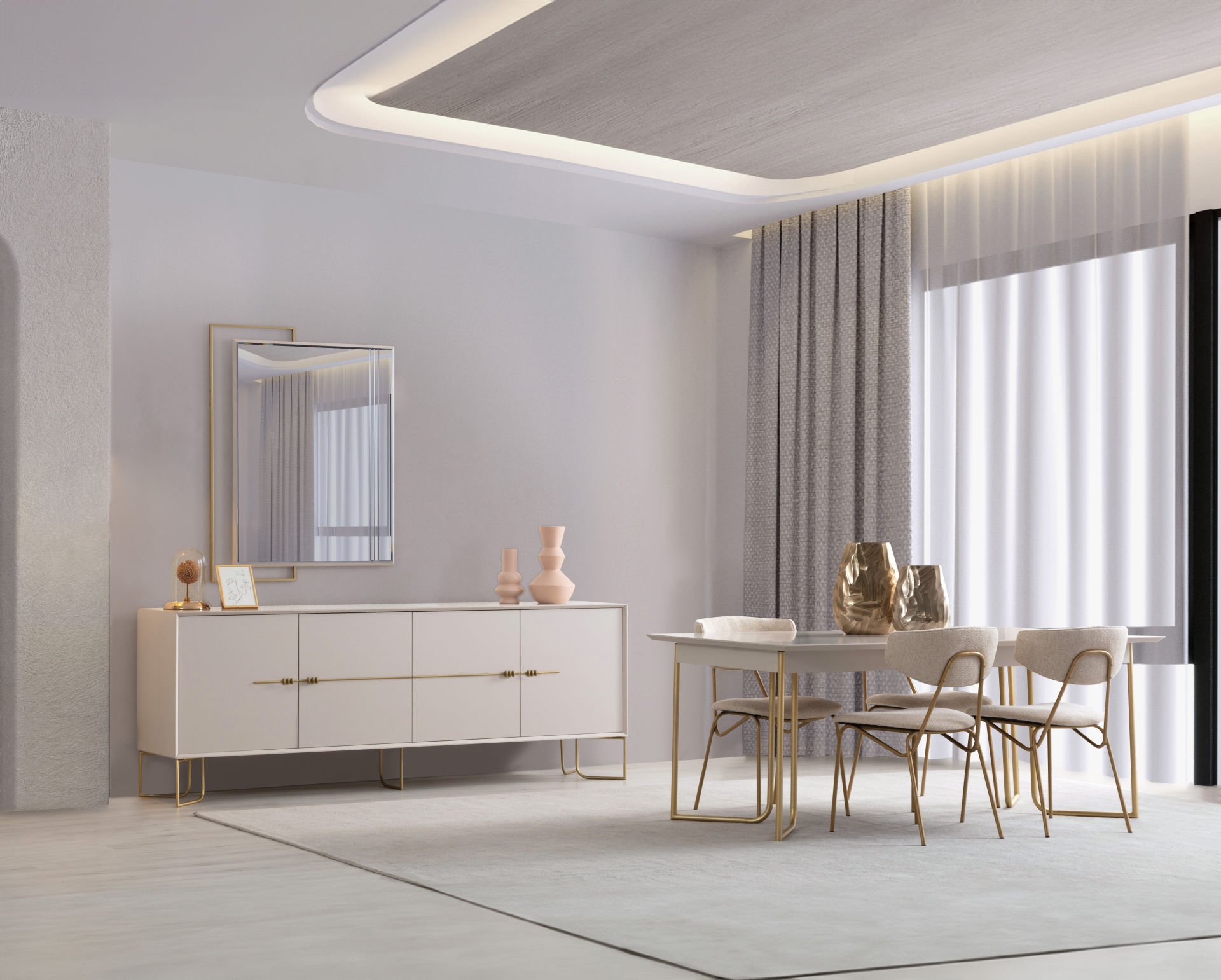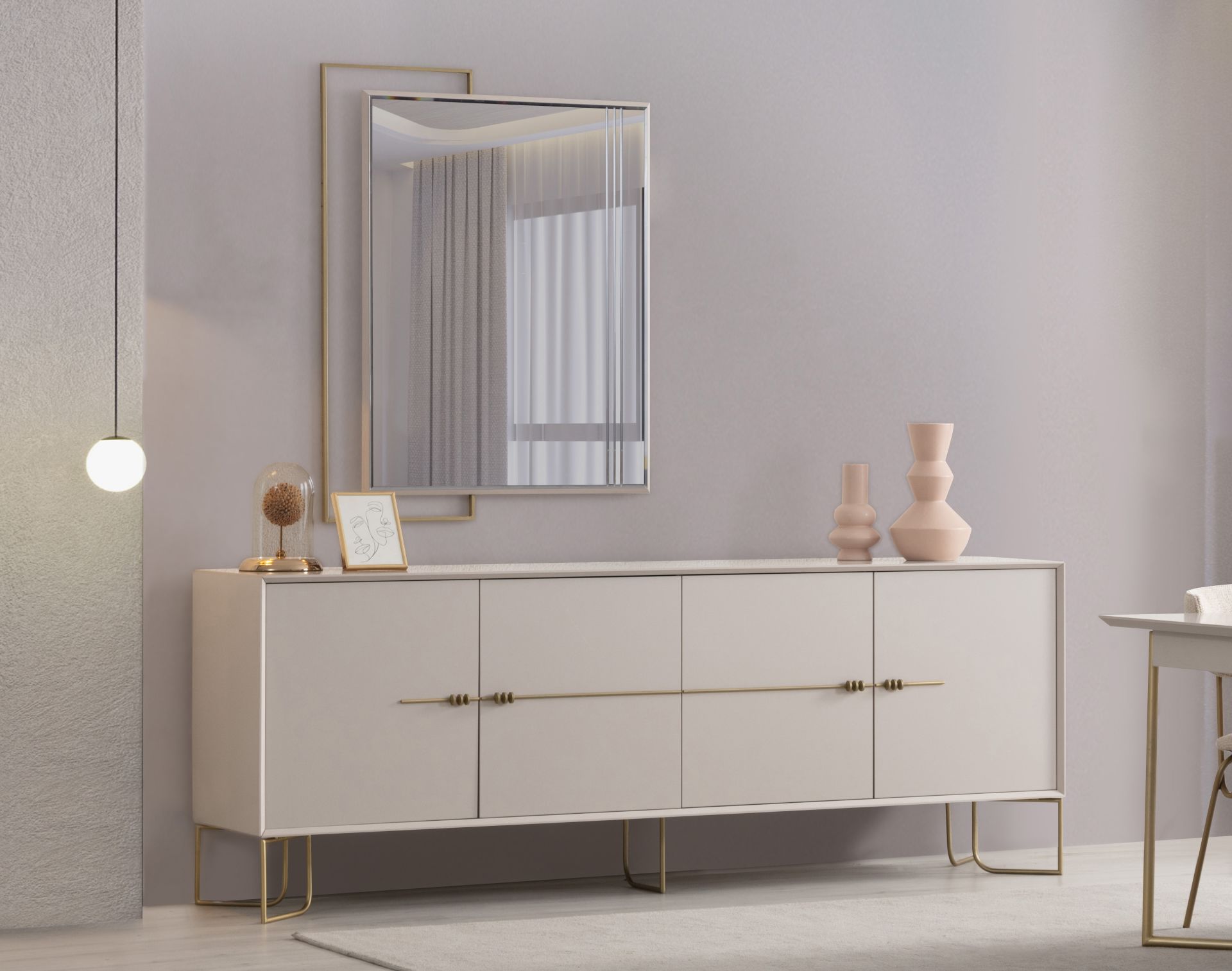 - Estela Yemek Odası, 1 Adet masa, 6 adet sandalye 1 adet konsol, aynadan, oluşmaktadır.