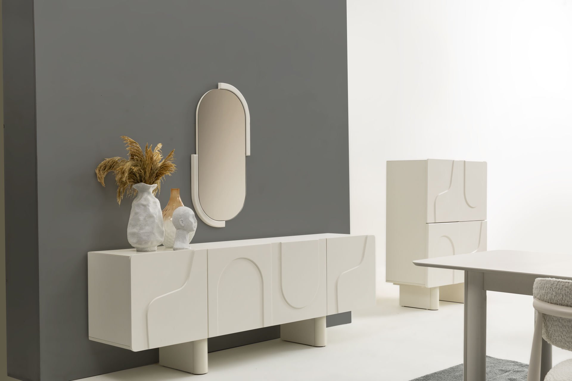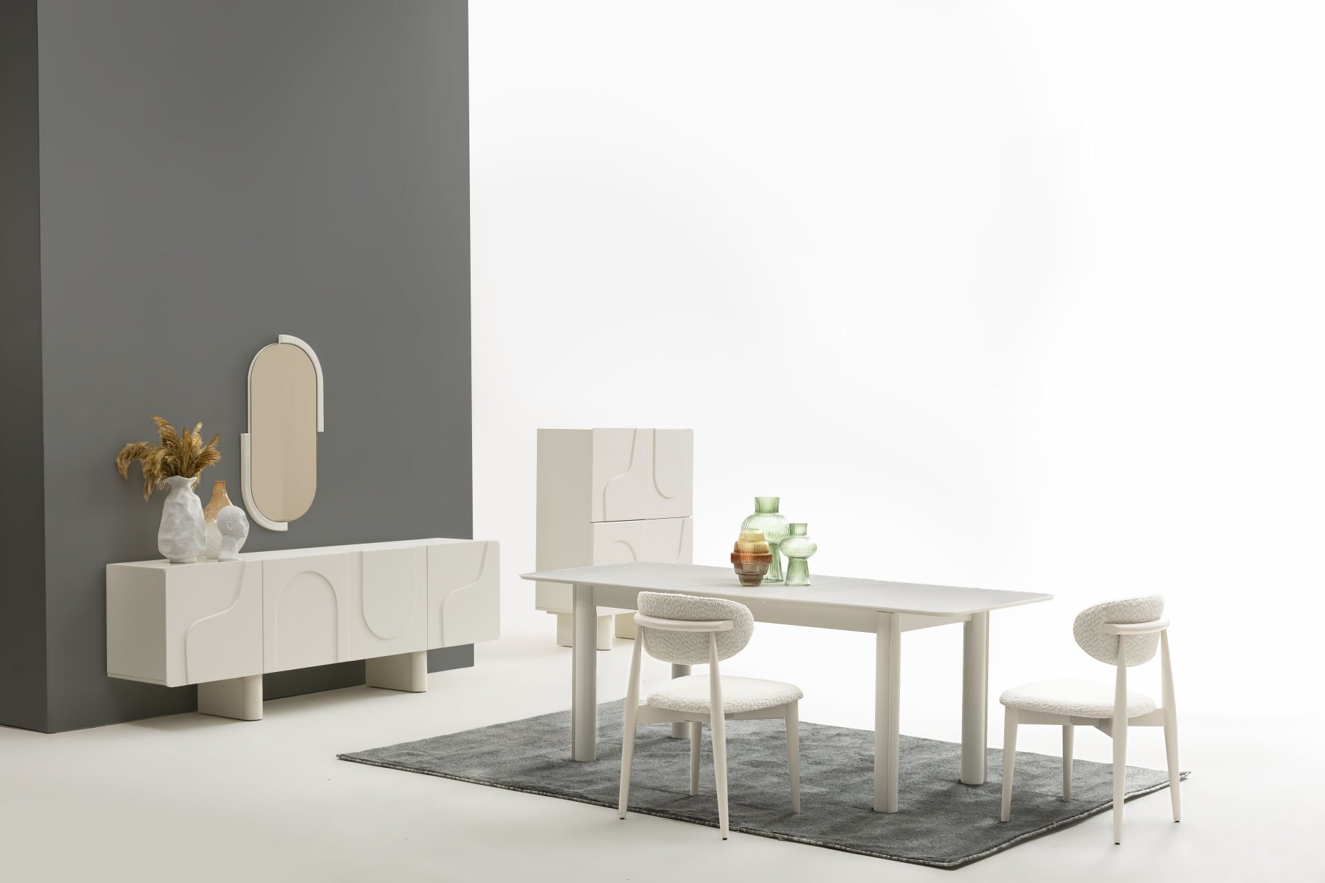 - Florya yemek odası içeriği: 1 Adet Konsol+aynası, 1 Adet Masa, 6 Adet Sandalye'den oluşmaktadır.