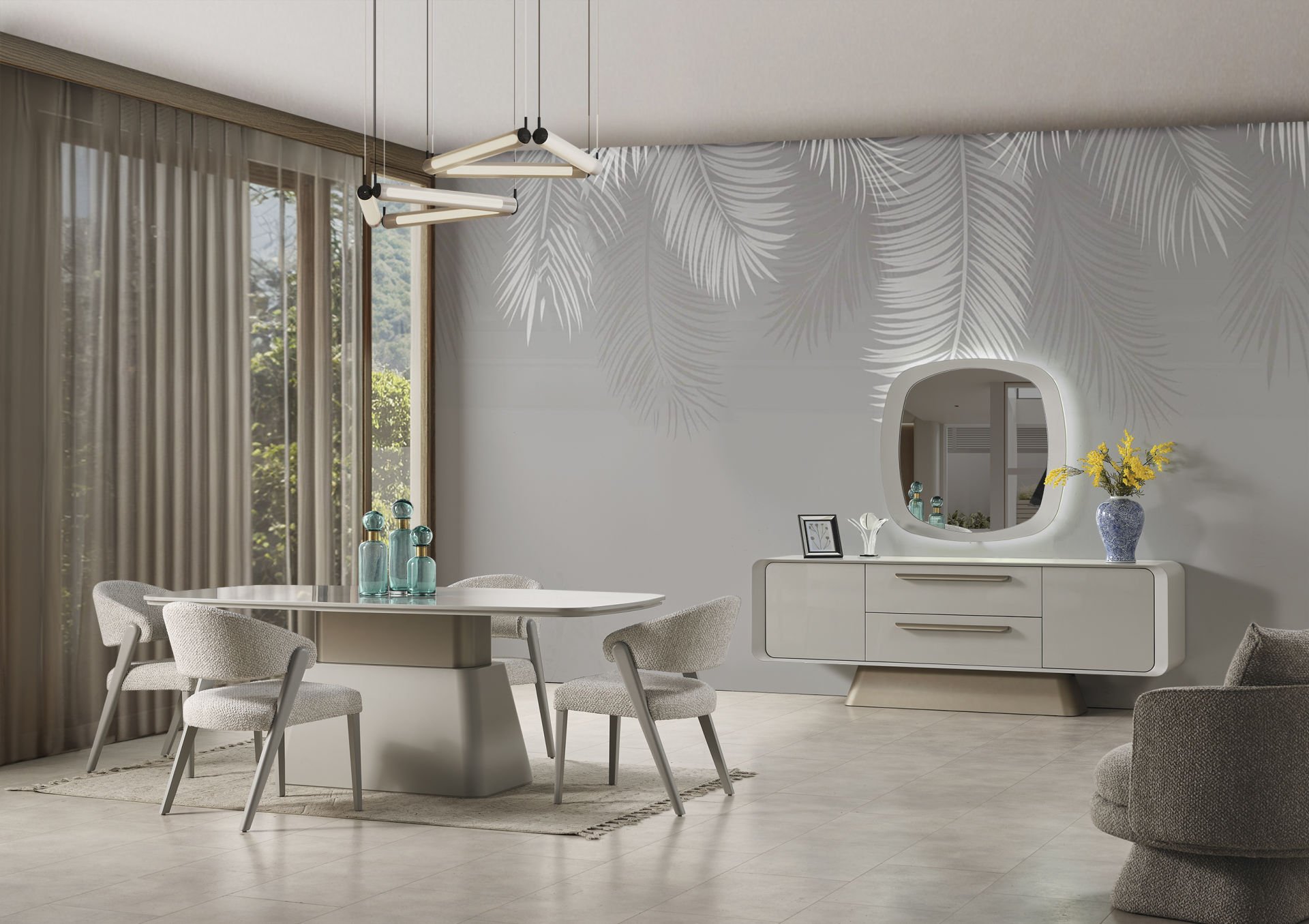- Galaksi Yemek Odası Takımı, Konsol, Yemek Masası ve 6 adet sandalye den oluşmaktadır.