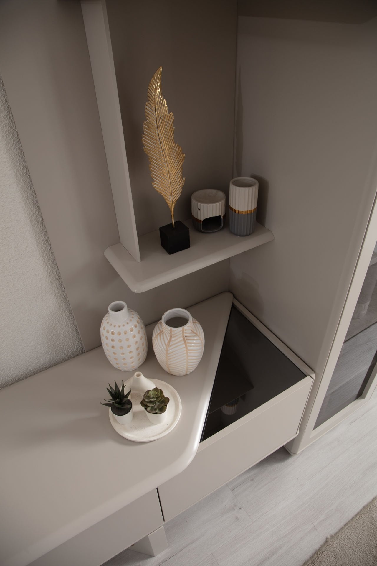 - Glamour Tv Ünitesi, Alt ve Üst raflı modül'den oluşmaktadır.