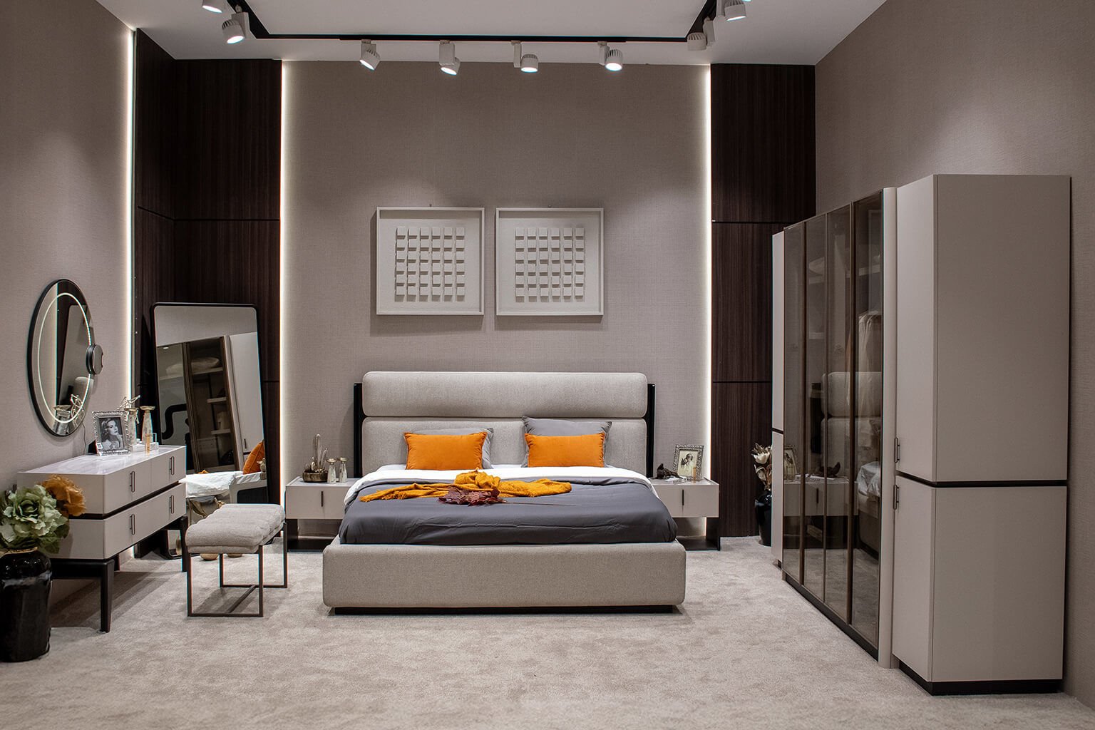 - Gölge Yatak Odası Takımı, Gardolap, Şifonyer, Bazalı karyola ve 2 adet Komodin'den oluşmaktadır.