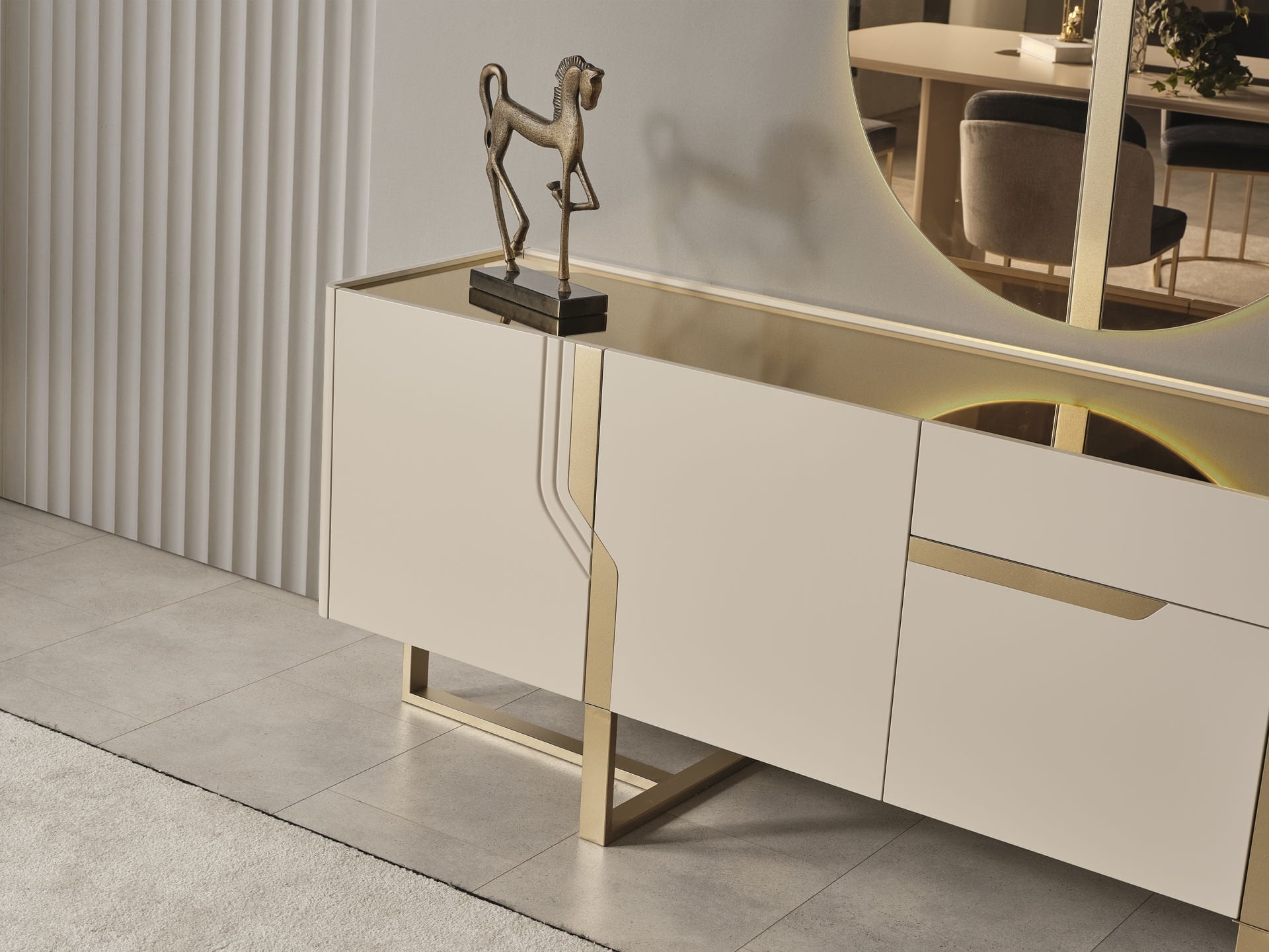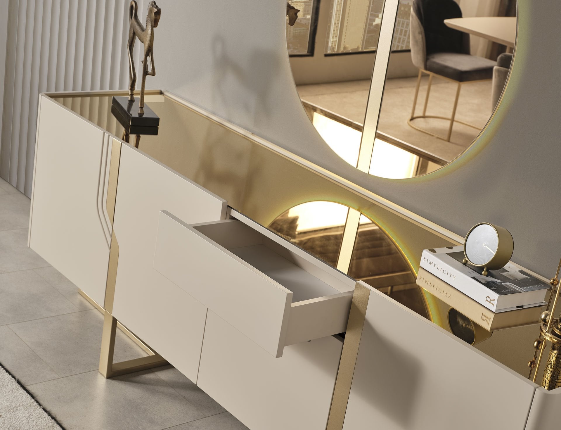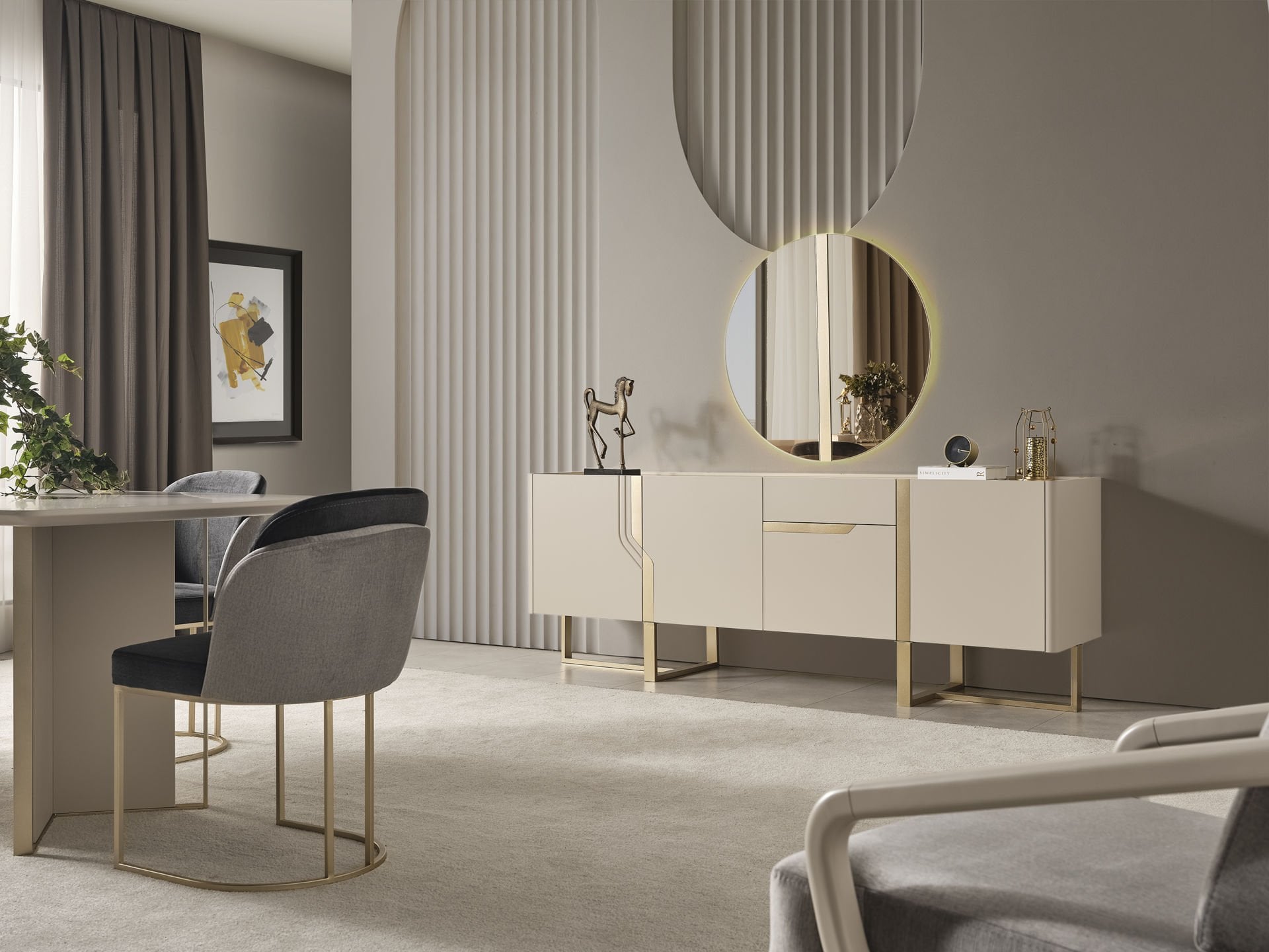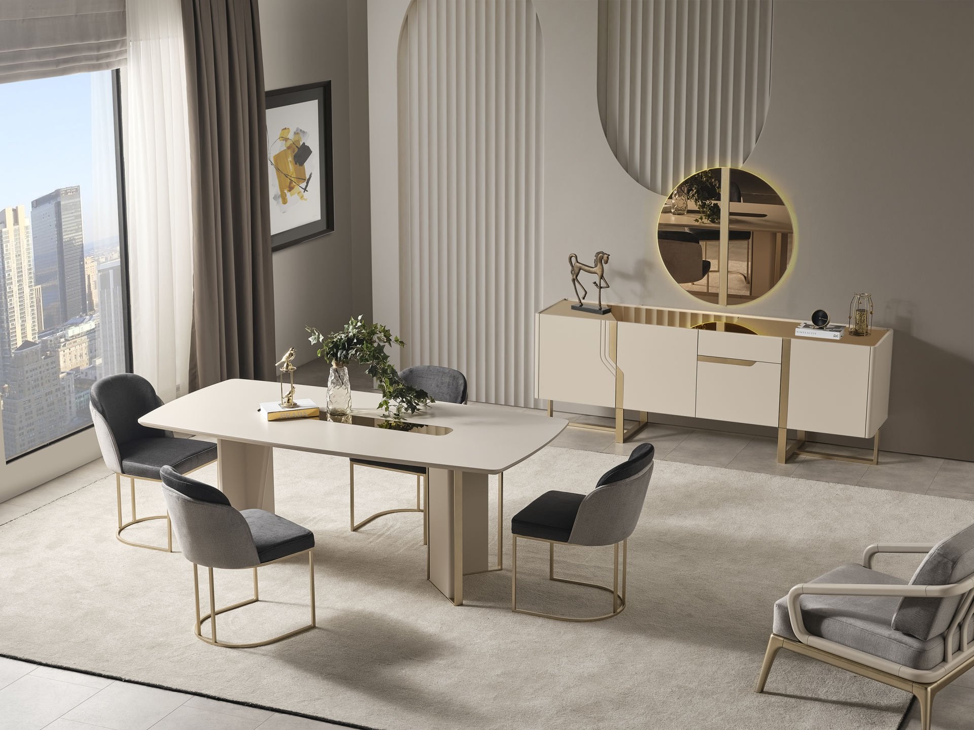 - Gues yemek odası içeriği: 1 Adet Konsol, 1 Adet Konsol aynası 1 Adet Masa,6 Adet Sandalye den oluşmaktadır.