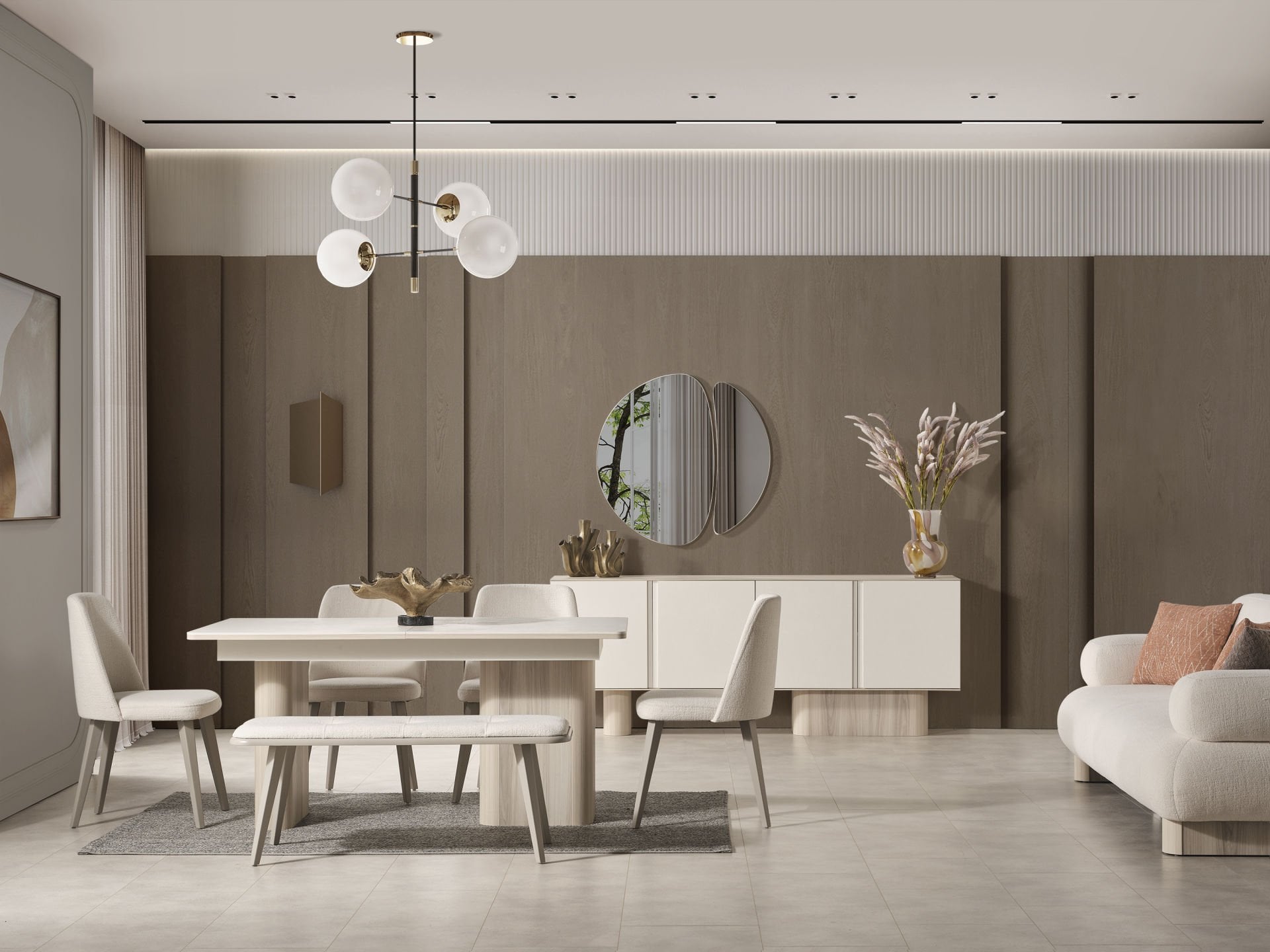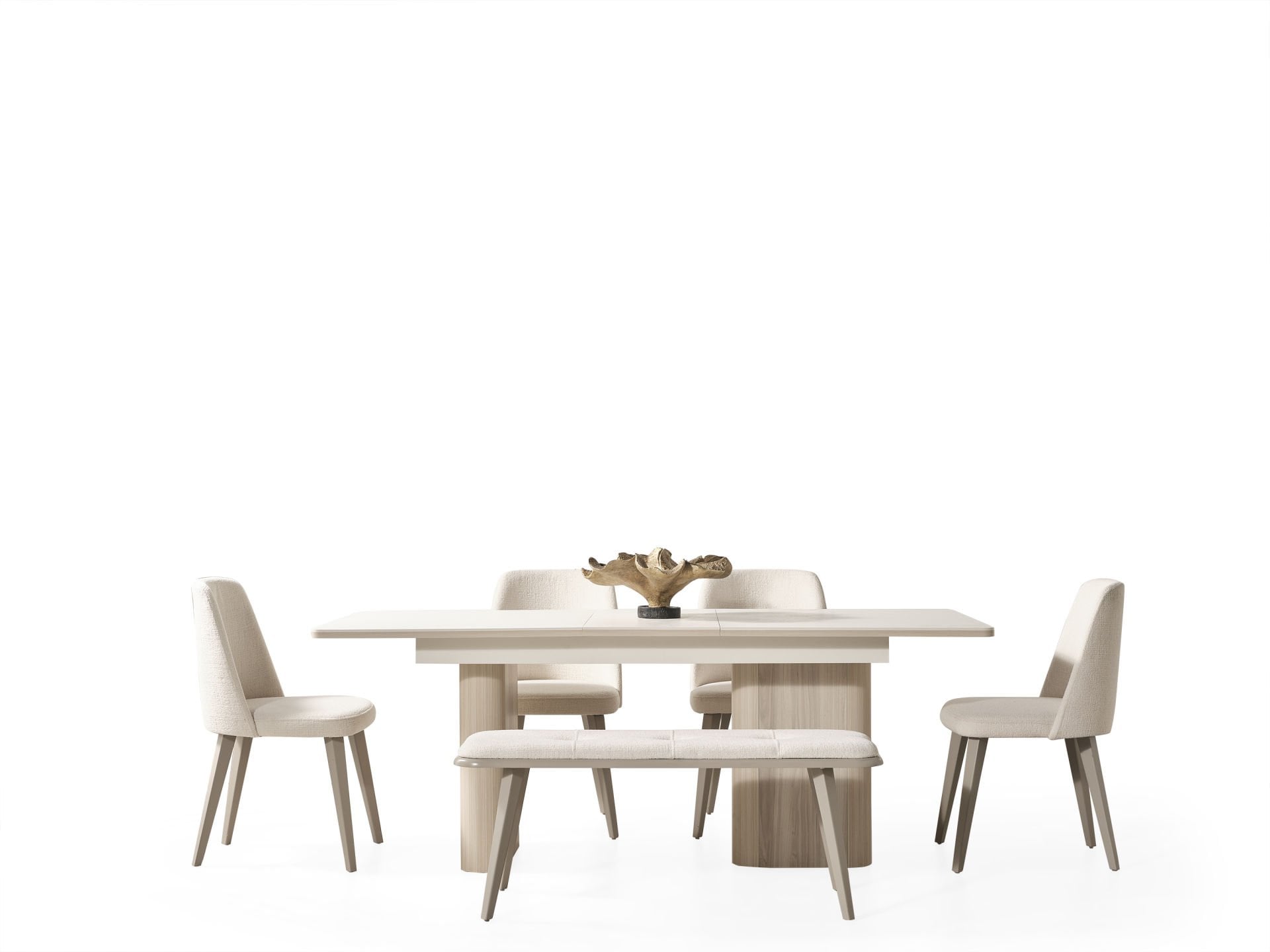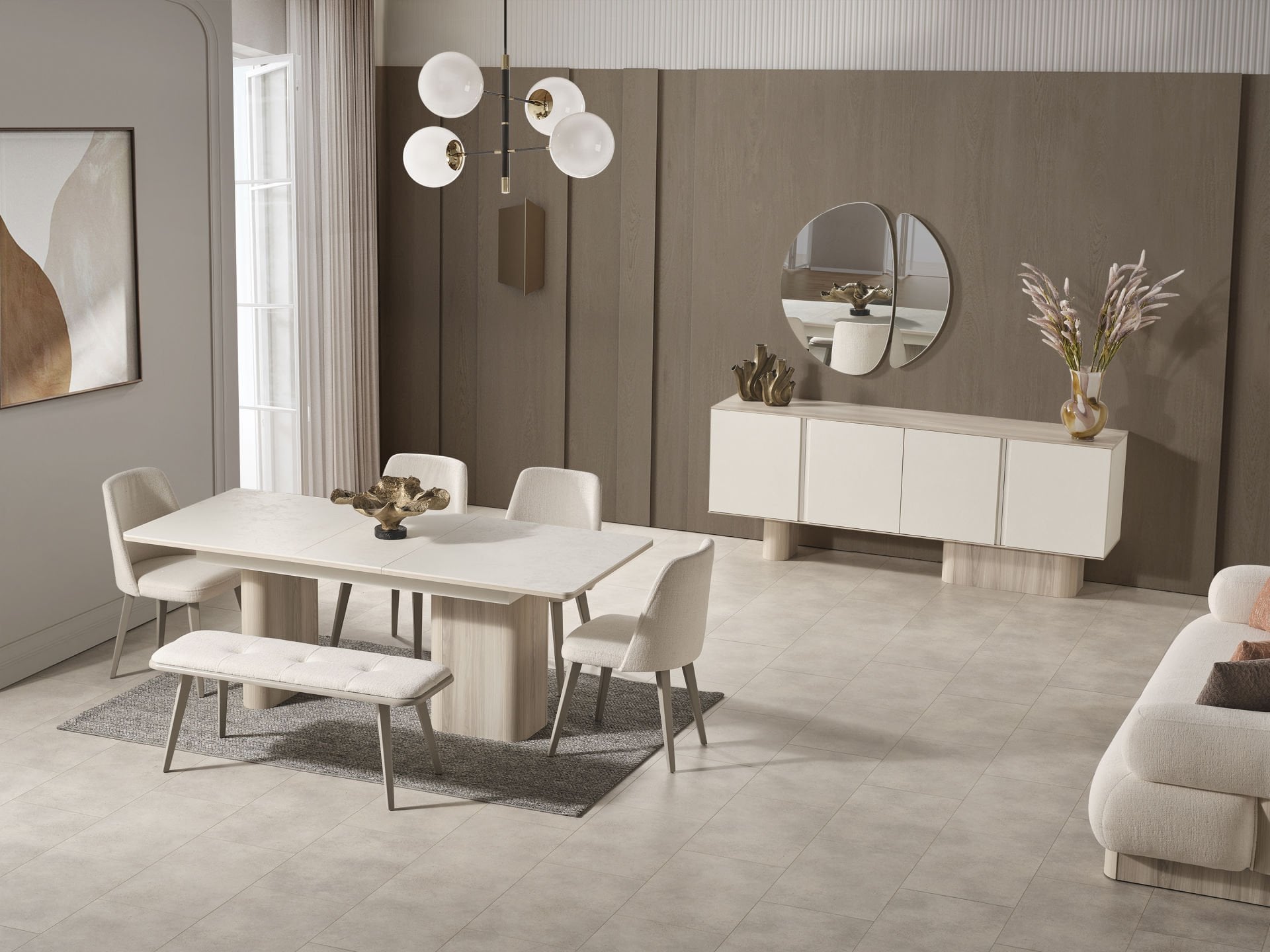 - Güneş yemek odası içeriği: 1 Adet Konsol, Konsol aynası 1 Adet açılır Masa, 4 Adet sandalye 1 adet bençten den oluşmaktadır.