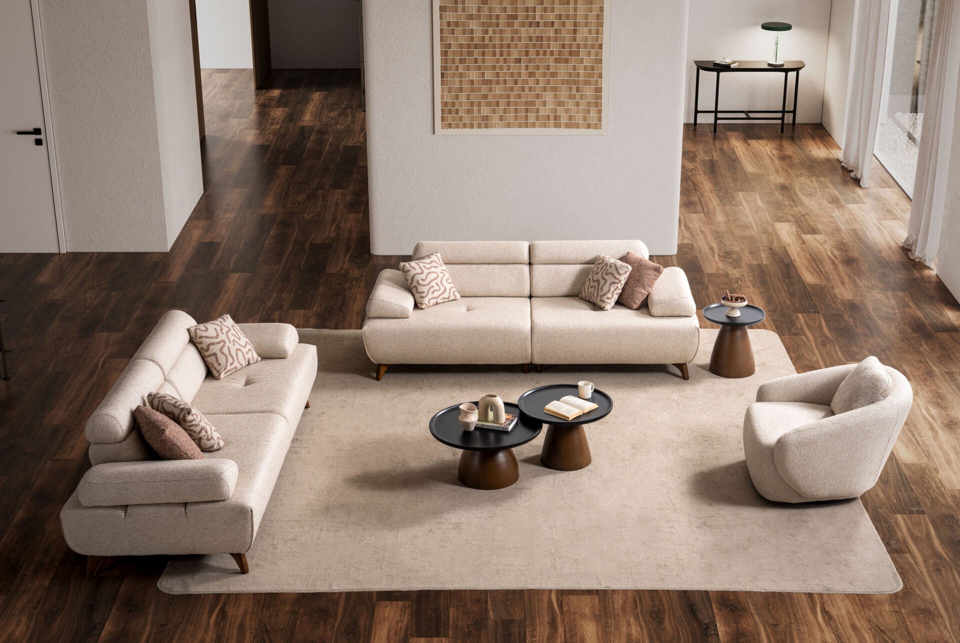 - Gusto Koltuk Takımı, 2 adet 3 lü kanepe ve 1 adet gusto berjer'den oluşmaktadır.