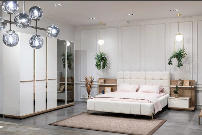 - İsabelle Yatak Odası Takımı ,5 Kapılı Gardolap, Şifonyer, Karyola Başlık ve 2 adet Komodin'den oluşmaktadır.
