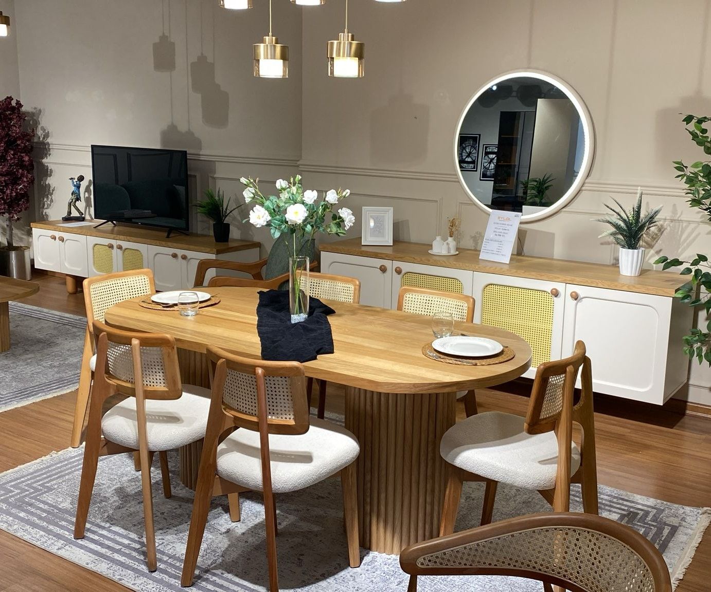 - İznik Yemek Odası Takımı, Konsol + Ayna,Yemek Masası 6 adet Sandalyeden oluşmaktadır.
