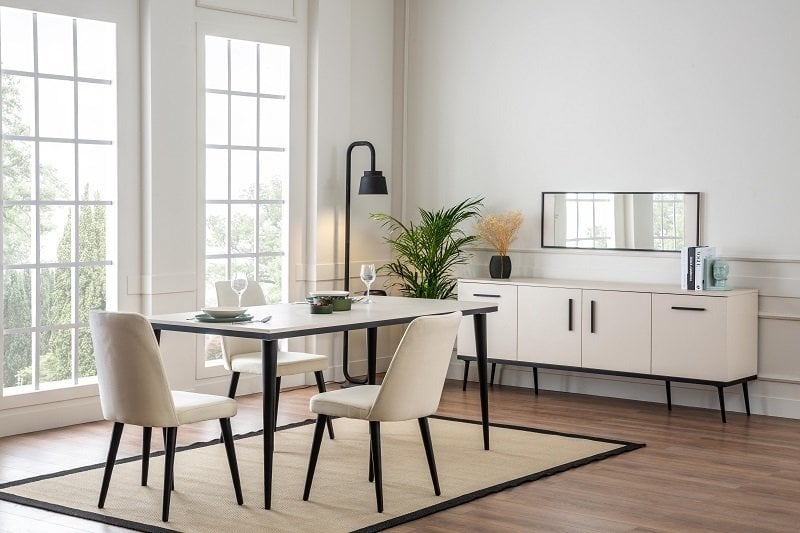 - Laris Yemek Odası Takımı, Konsol + Ayna,Yemek Masası 6 adet Sandalyeden oluşmaktadır.