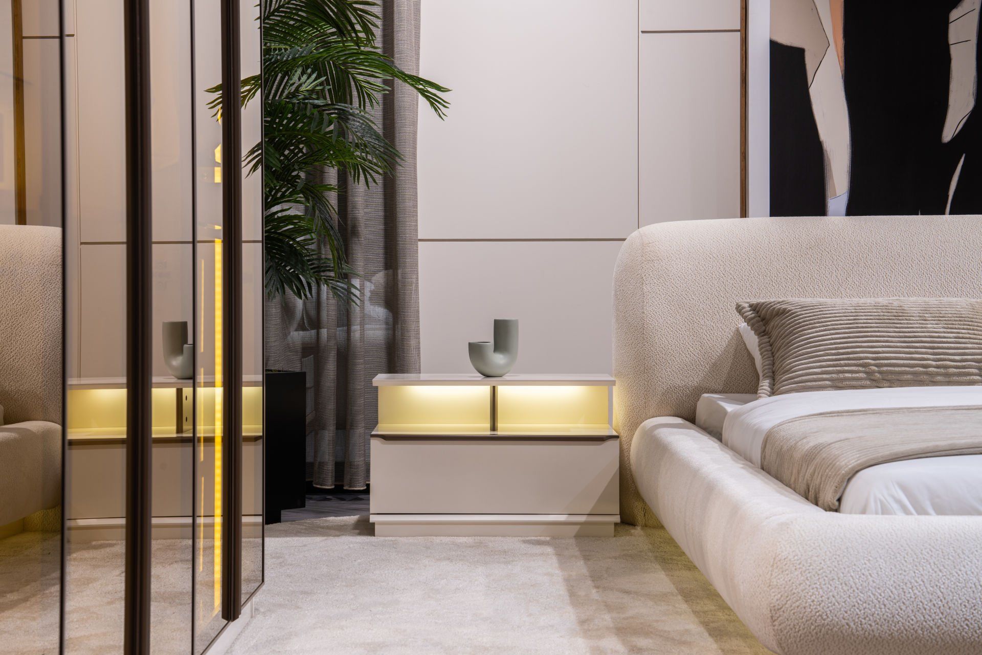 - Latte Köşe Dolaplı Yatak Odası, 5 Adet 2 kapılı dolap, 1 adet tek kapılı dolap ve 1 adet köşe modülden oluşan toplamda 12 kapılı dolap, 2 adet komidin, 1 adet bazalı karyola, başlık, 1 adet Şifonyer ve aynasından oluşmaktadır.