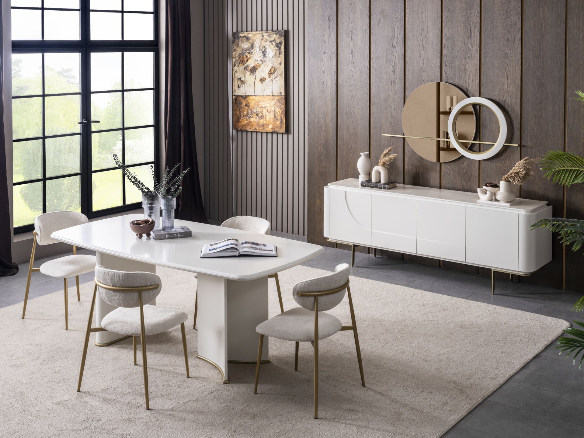 - Lena Yemek Odası Takımı, Konsol Aynalar, Yemek Masası ve 6 adet Sandalye den oluşmaktadır.