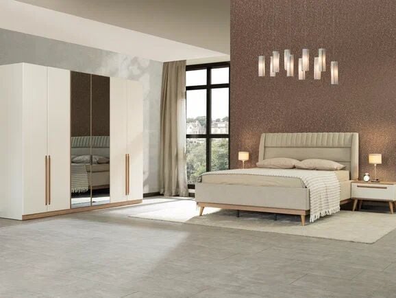 - Liza Yatak Odası Takımı,6 Kapılı Dolap, 2 Adet Komodin, Karyola (BAZASIZ) Şifonyer ve Aynasından Oluşmaktadır.
