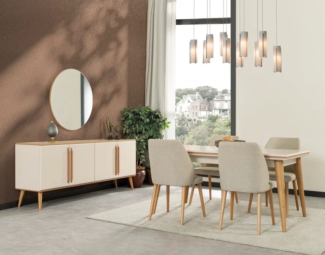 - Liza Yemek Odası Takımı, Konsol + Ayna,Yemek Masası 6 adet Stock Sandalye den oluşmaktadır.