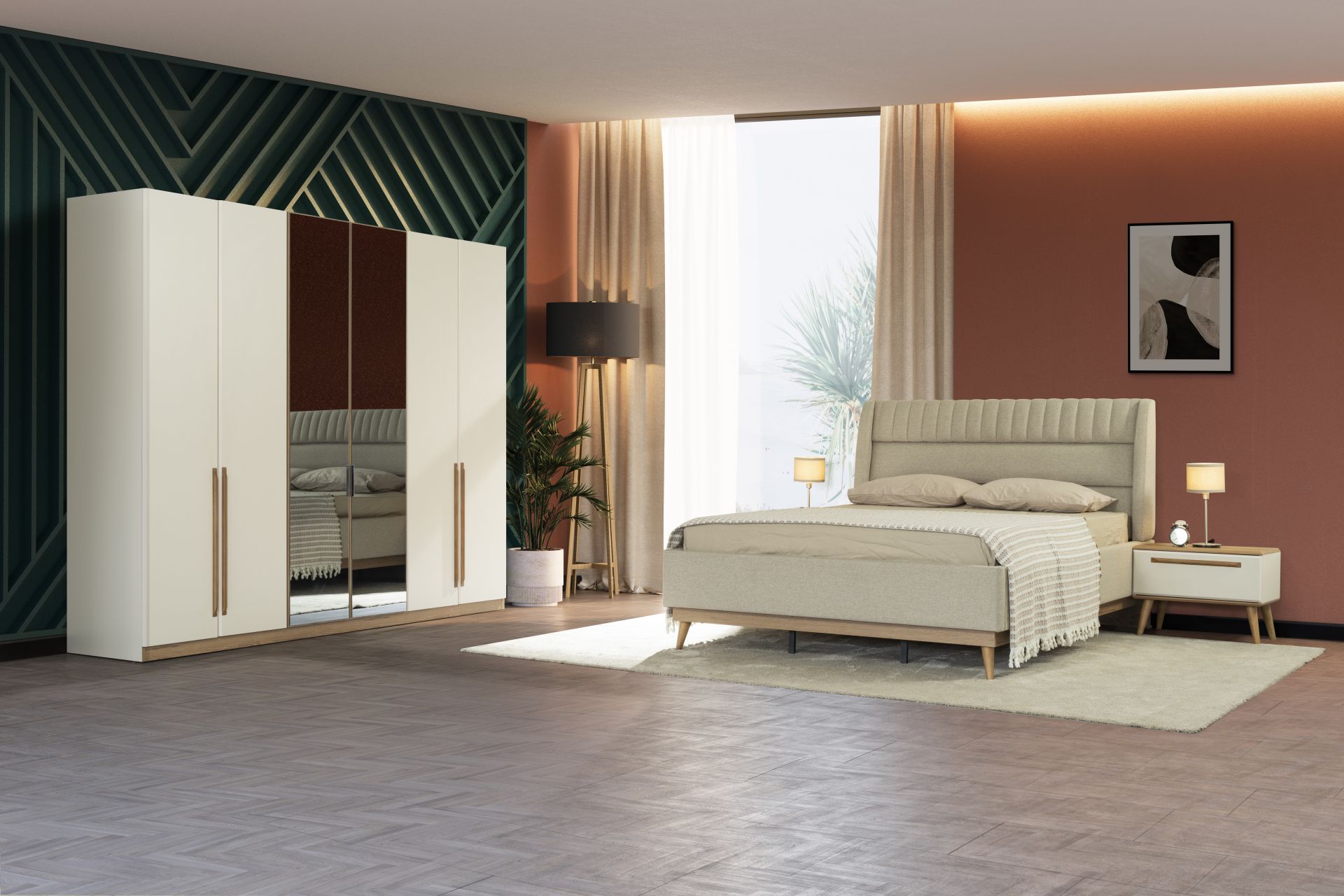 - Liza Yatak Odası, 1 Adet 6 Kapılı Dolap, 2 adet komodin, 1 adet bazasız karyola, başlık, 1 adet Şifonyer ve aynasından oluşmaktadır.