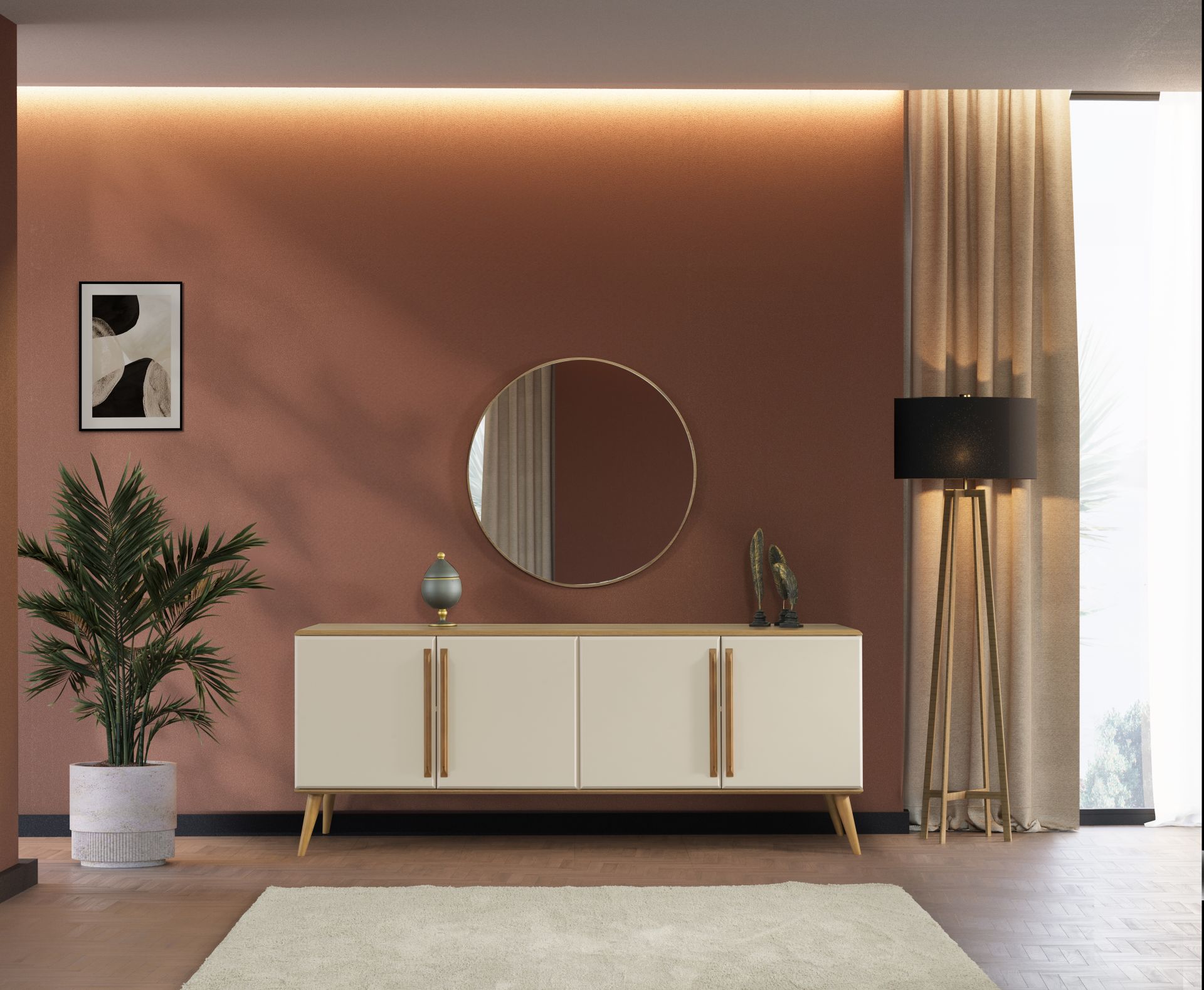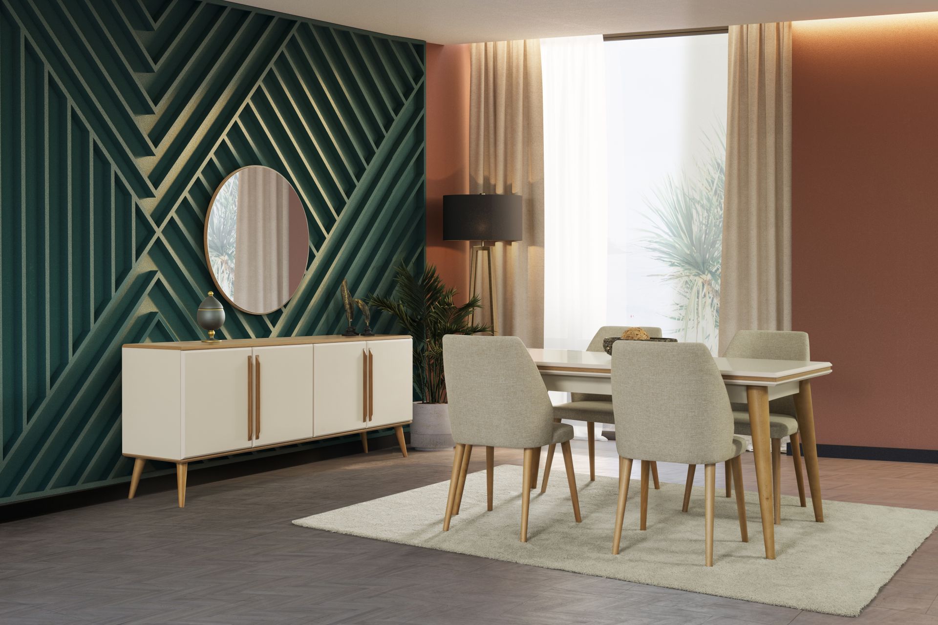 - Liza Yemek Odası Takımı, Konsol + Ayna,Yemek Masası 6 adet Stock Hellas Sandalyeden oluşmaktadır.