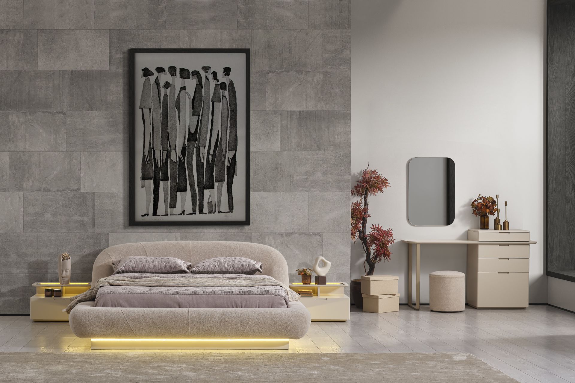 - Lizbon Yatak Odası , 1 Adet 6 kapılı dolap, 2 adet komodin, 1 adet bazalı karyola başlık, 1 adet Şifonyer ve aynasından oluştadır.