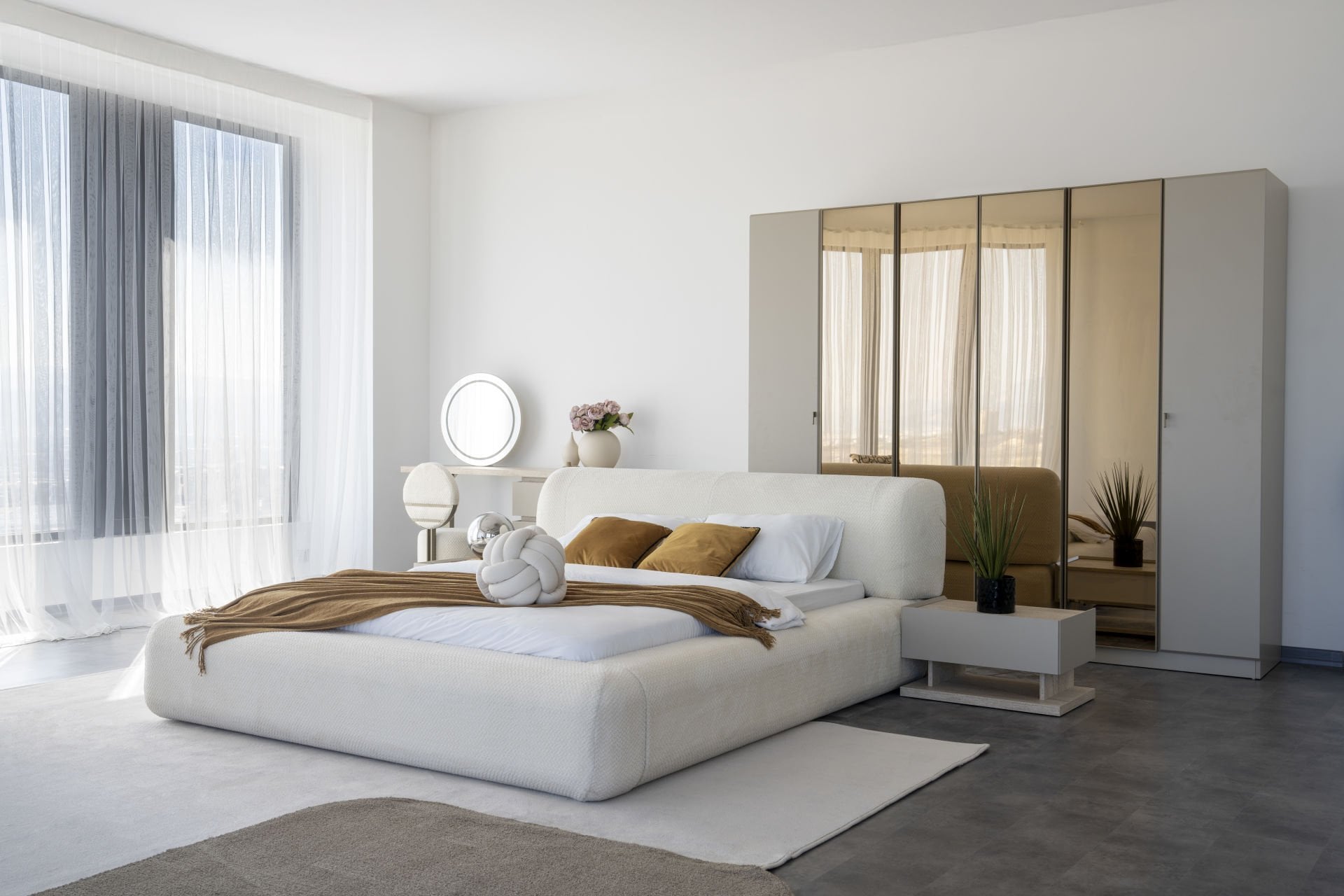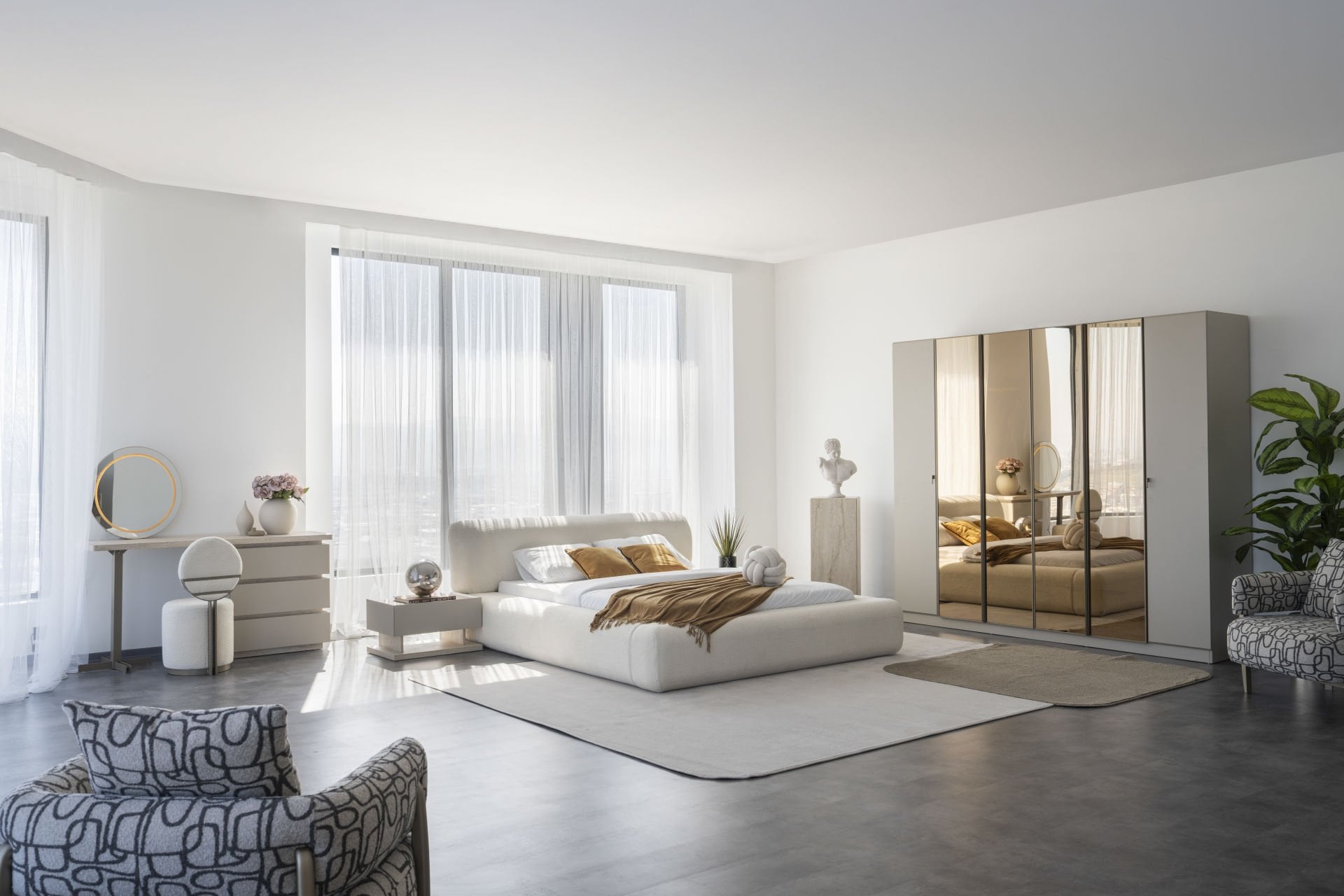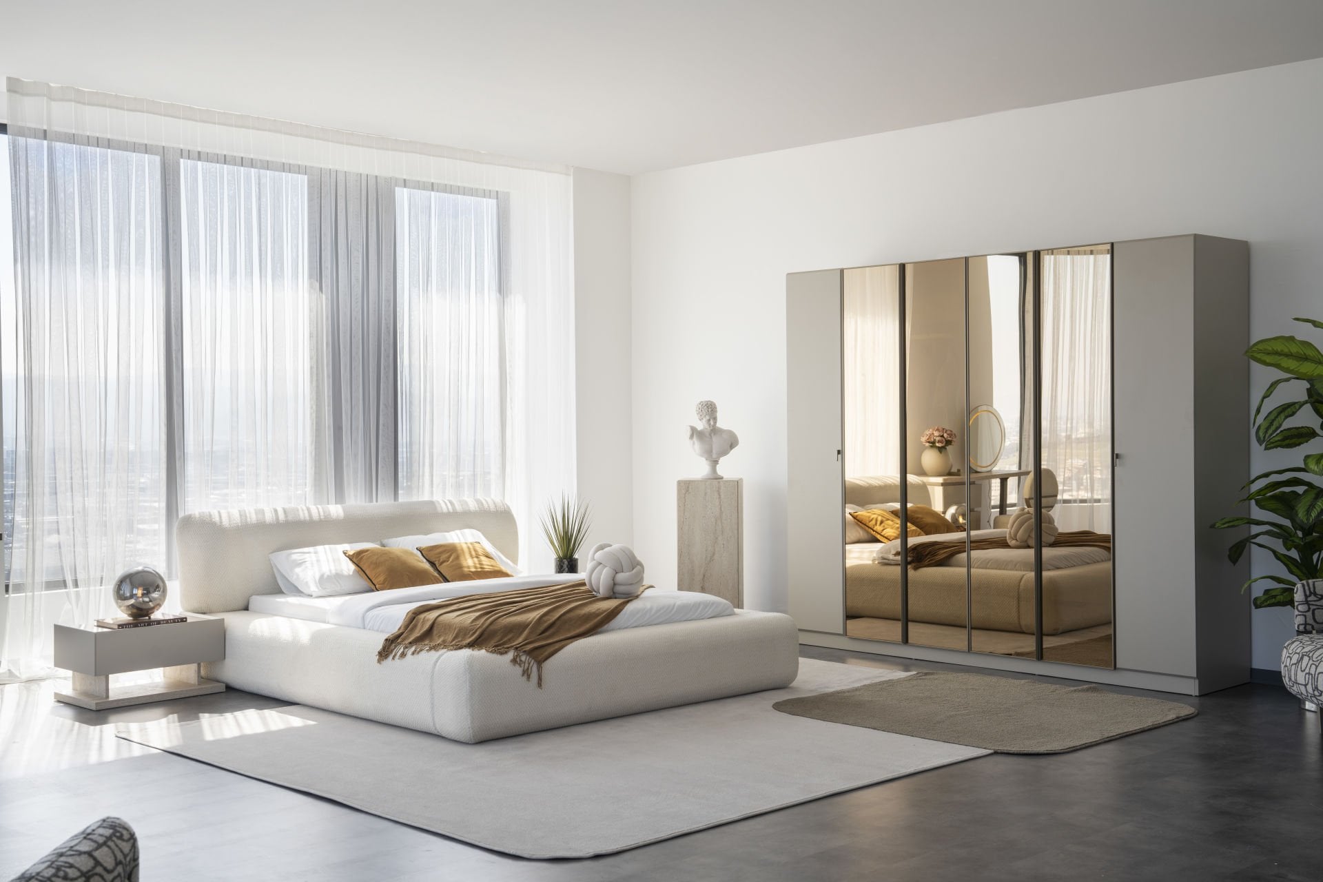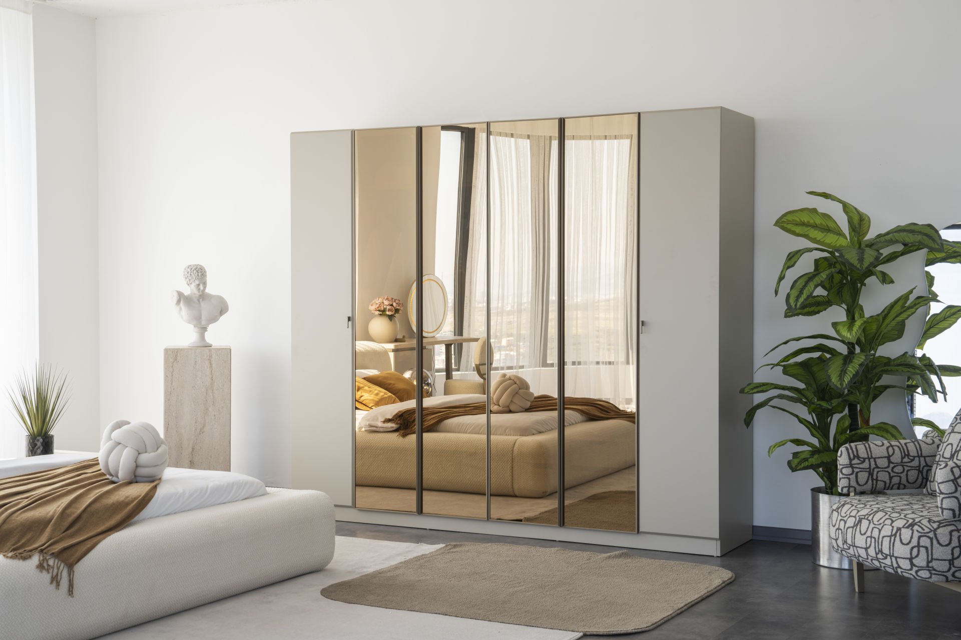 - Mocha Yatak Odası, 1 Adet 6 kapılı dolap, 2 adet komidin, 1 adet bazalı karyola, başlık, 1 adet Şifonyer ve aynasından oluşmaktadır.