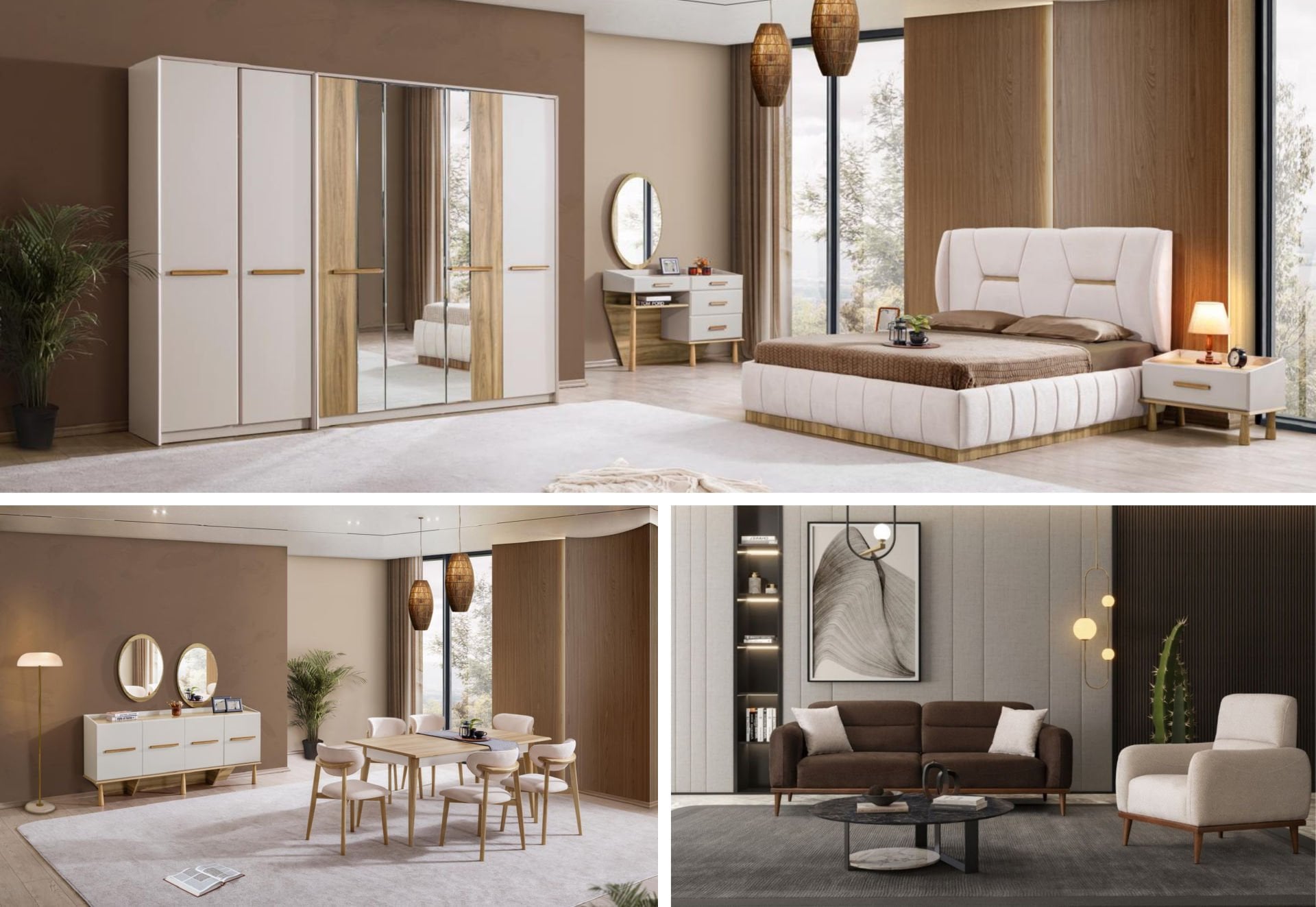 - Moon Yatak Odası Takımı; Gardolap, Şifonyer + ayna, Bazasız karyola ve 2 adet Komodin'den oluşmaktadır.
