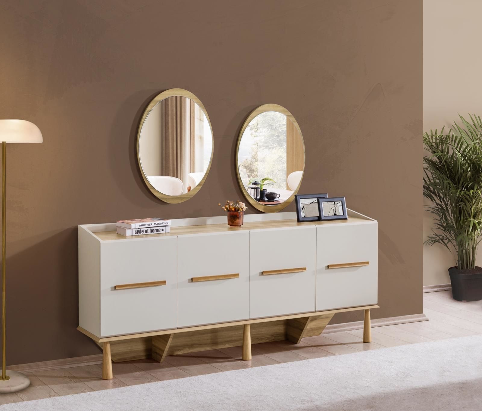 - MoonYemek Odası takımı; Konsol ayna , Yemek masası 4 adet stock ahşap sandalye den oluşmaktadır.