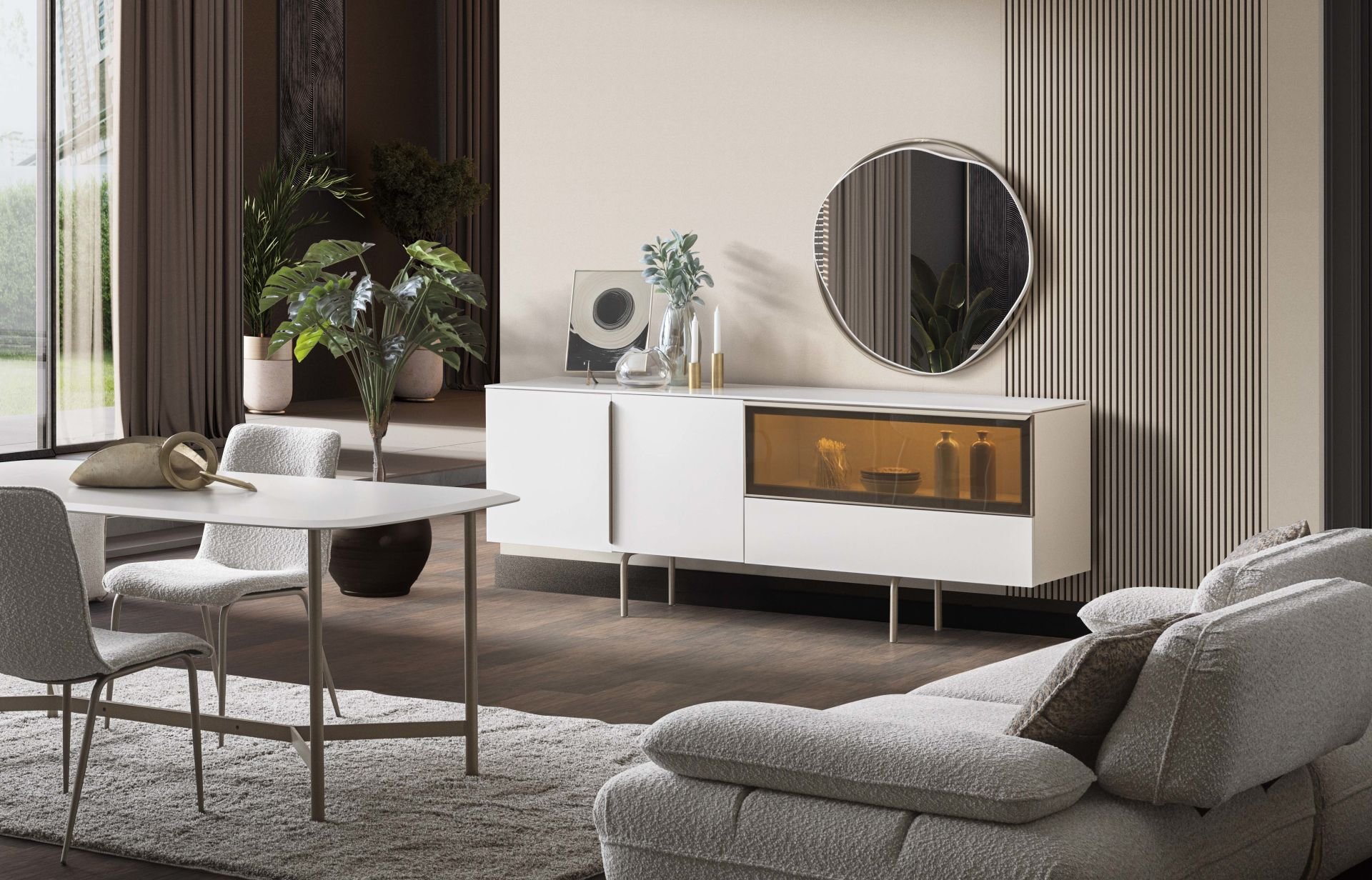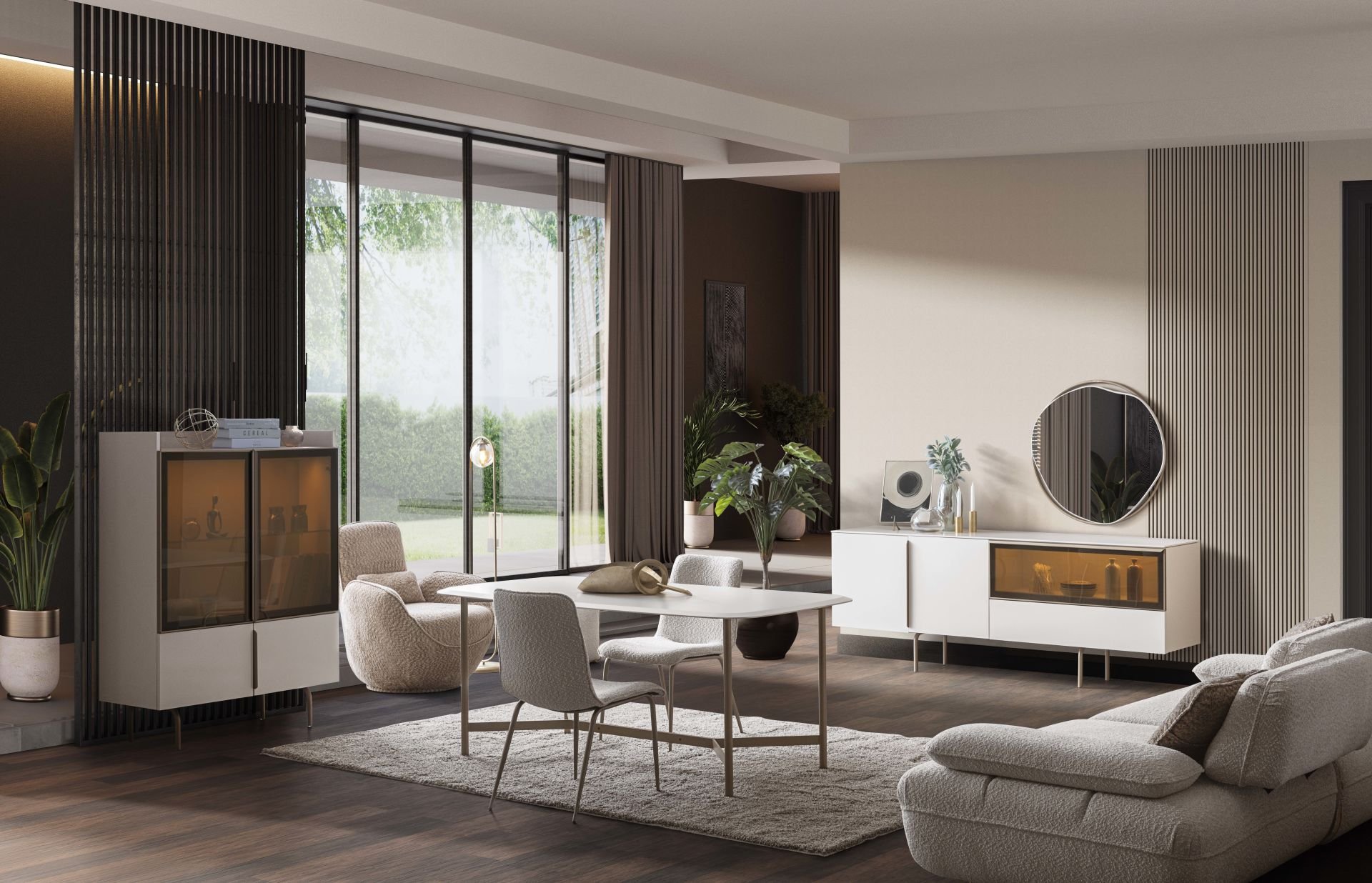 - Noble yemek odası içeriği: 1 Adet Konsol+aynası, 1 Adet Sabit Masa, 6 Adet Sandalye'den oluşmaktadır.