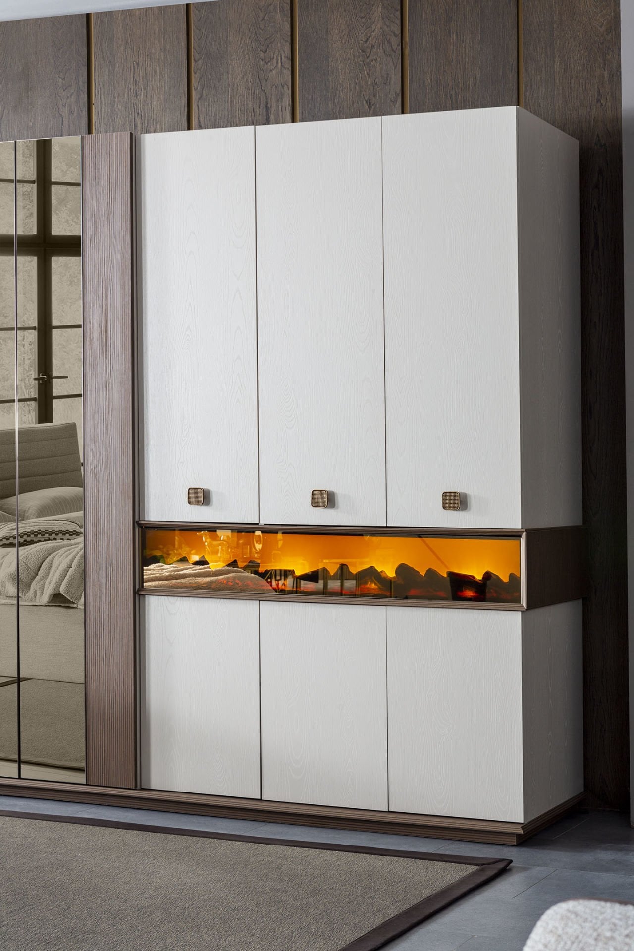 - Dolapta kullanılan şömine detayı ile odanızın ambiyansını değiştirecek.