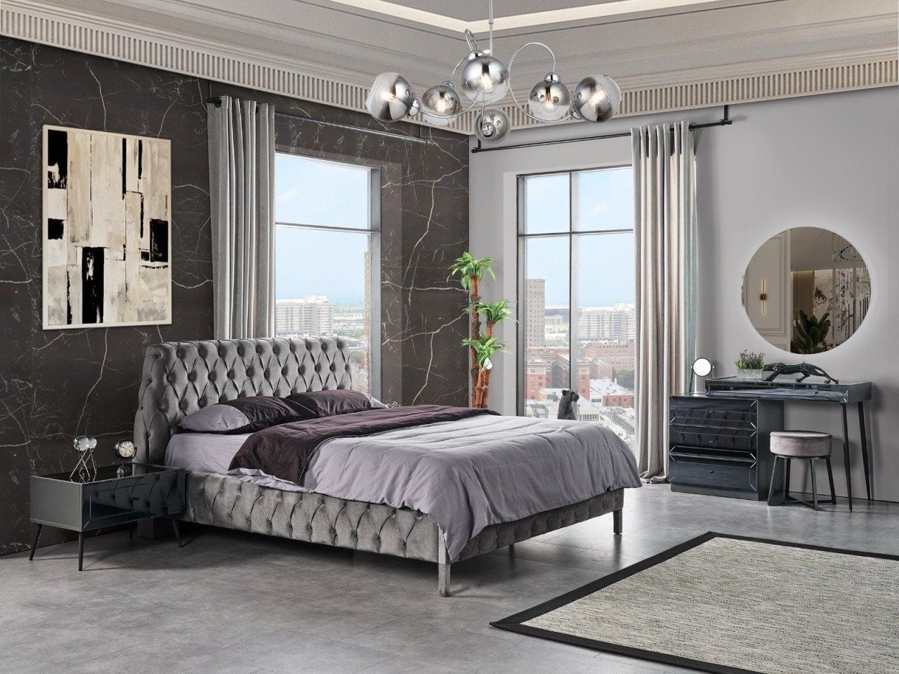 - OsloYatak Odası, 1 Adet 6 kapılı Dolap, 2 adet komodin, 1 adet baza hediyeli karyola, başlık, 1 adet Şifonyer ve aynasından oluşmaktadır.