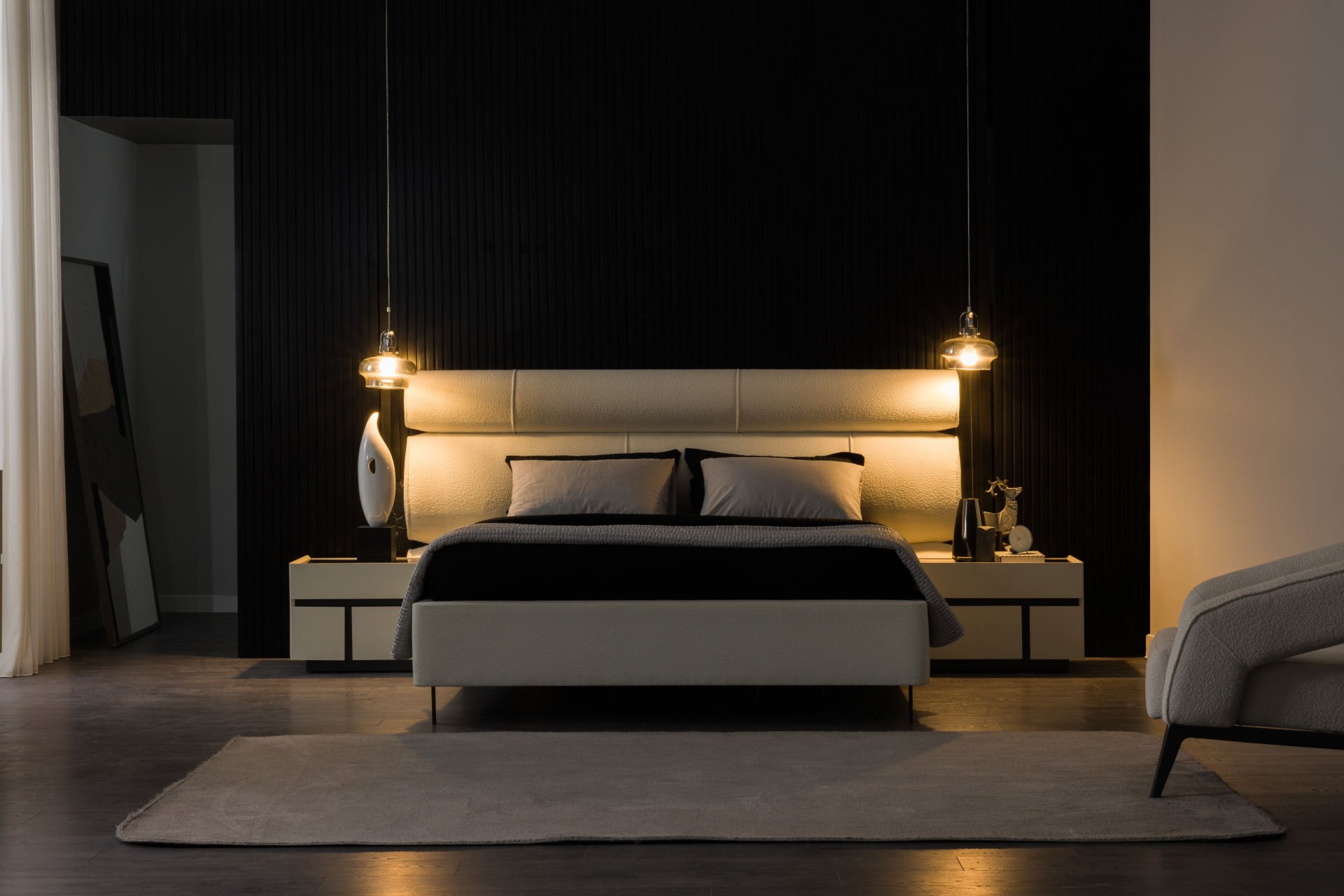 - Pablo Yatak Odası, 1 Adet 5 kapılı Dolap, 2 adet komodin, 1 adet bazalı karyola, başlık, 1 adet Şifonyer ve aynasından oluşmaktadır.