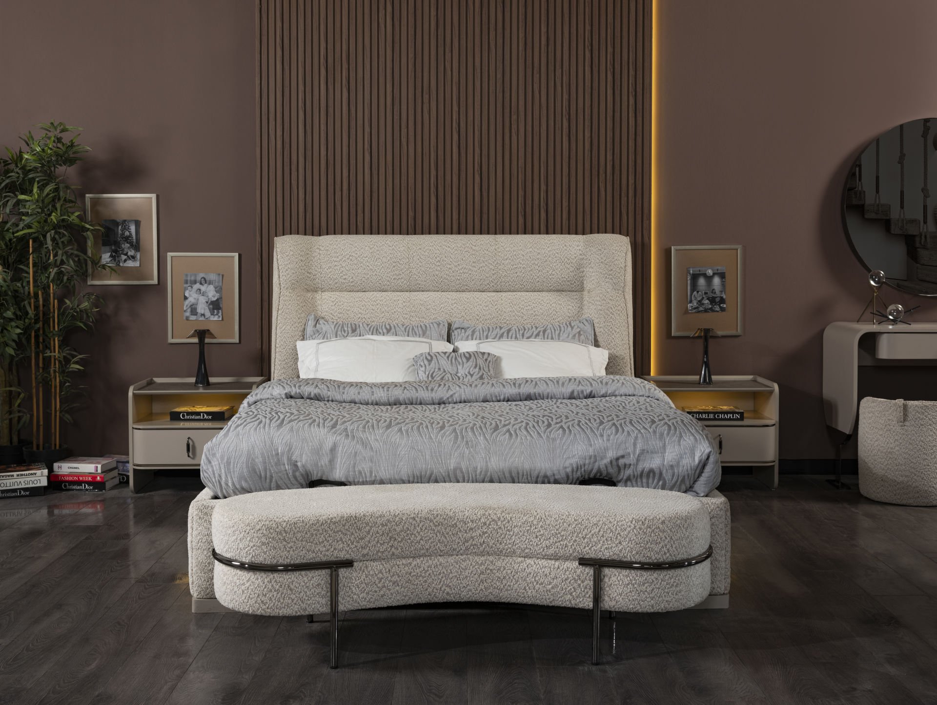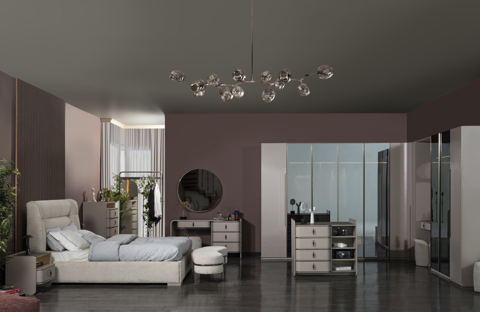 - Paris Yatak Odası, 1 Adet 6 kapılı Dolap, 2 adet komodin, 1 adet karyola, başlık, 1 adet Şifonyer + ayna dan oluşmaktadır.