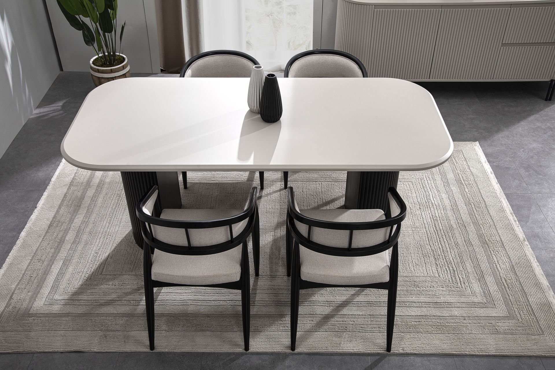 - Petra Yemek Odası Takımı, Konsol+ayna , Sabit Yemek Masası 6 adet Sandalyeden oluşmaktadır.