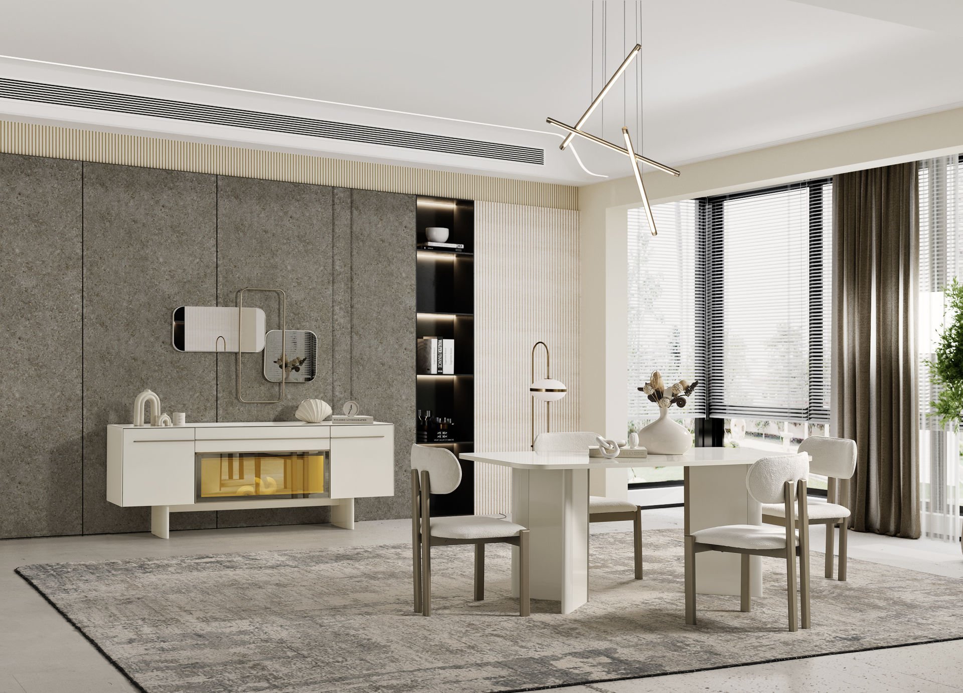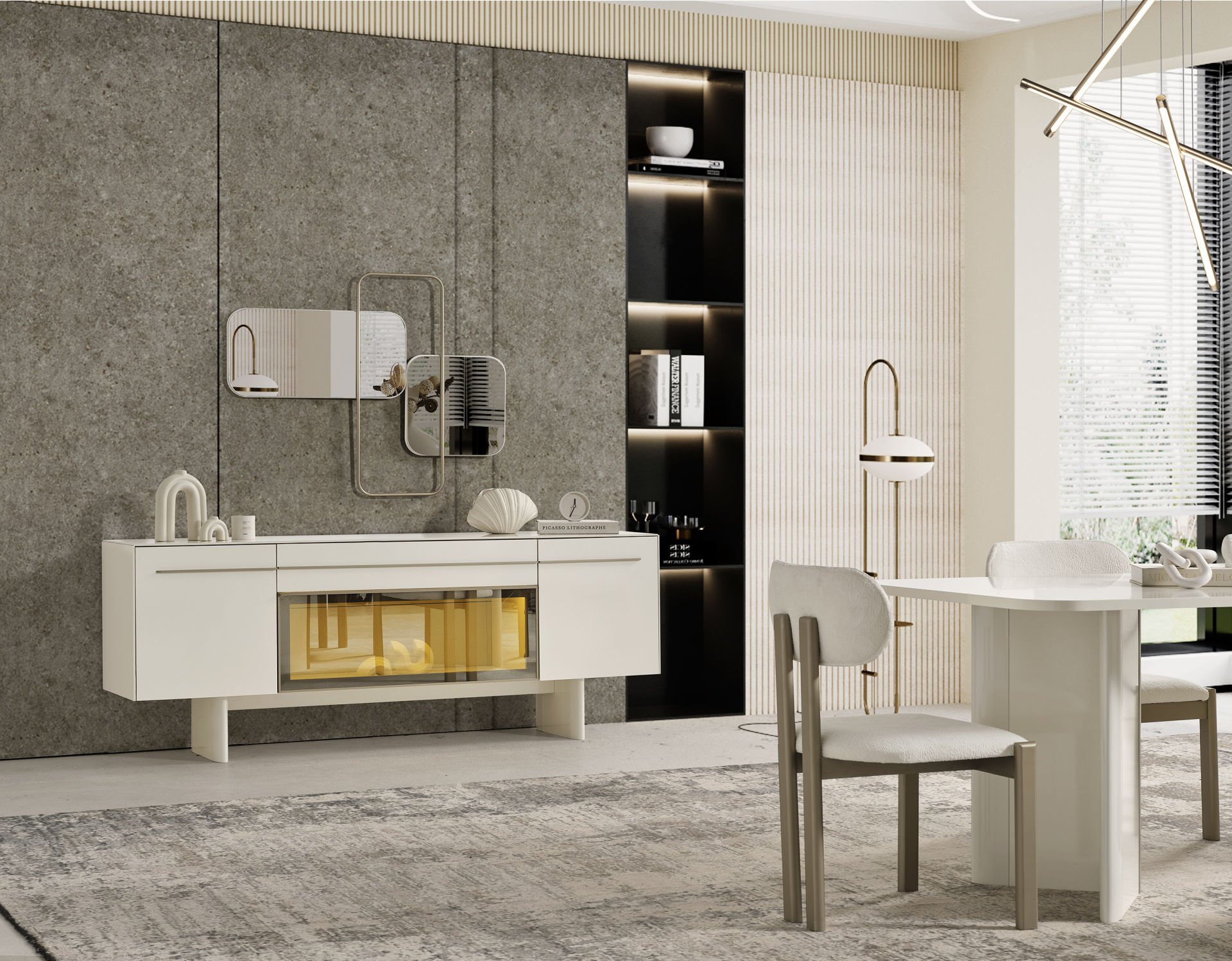 - Petron yemek odası içeriği: 1 Adet Konsol+aynası, 1 Adet Masa, 6 Adet Sandalye den oluşmaktadır.