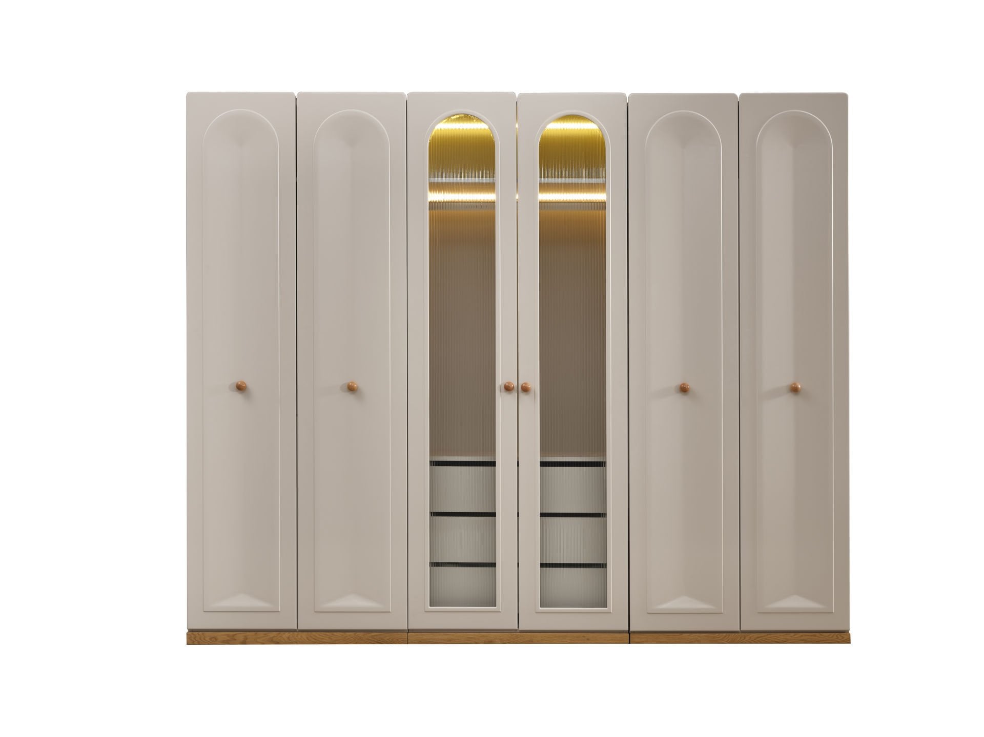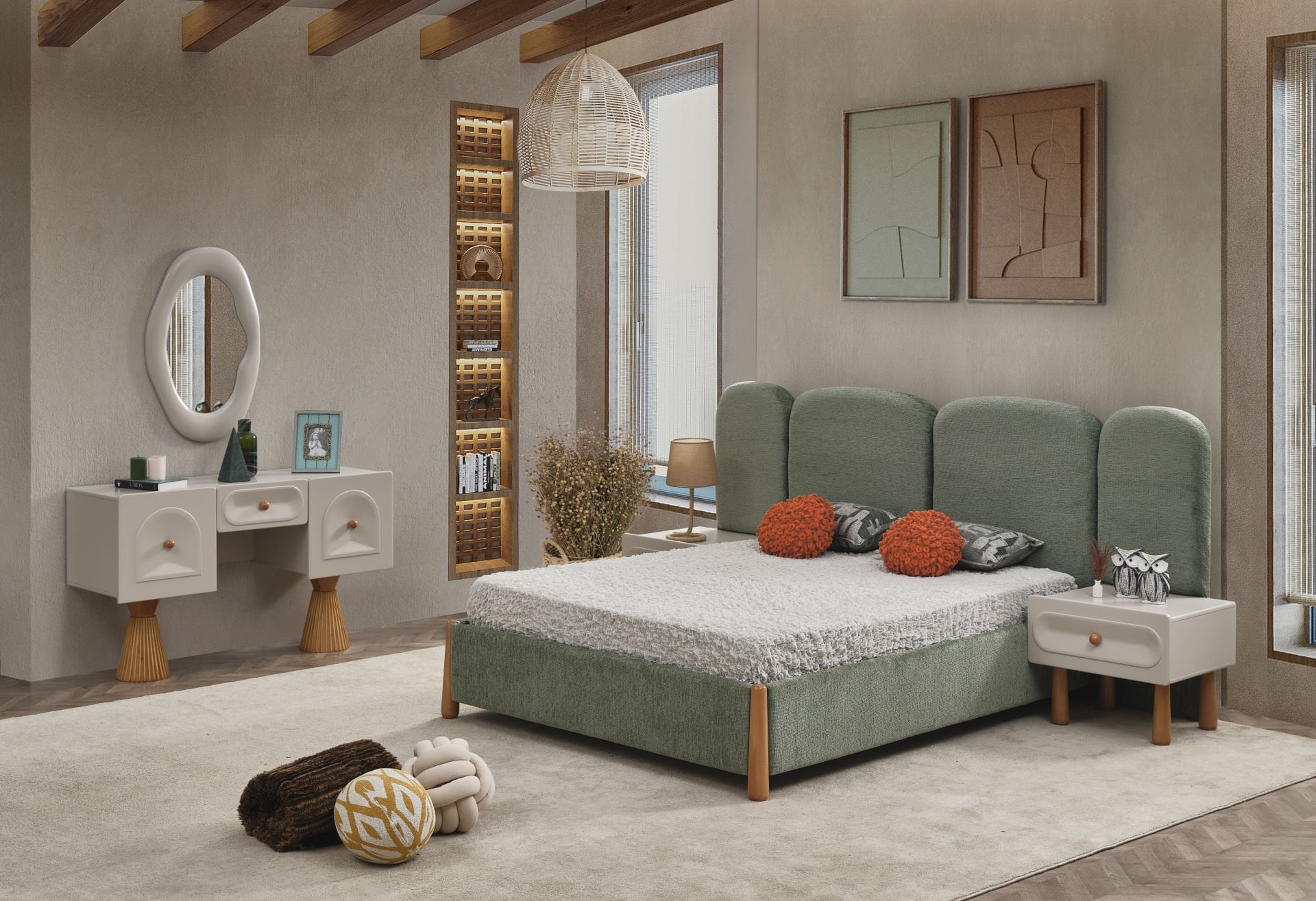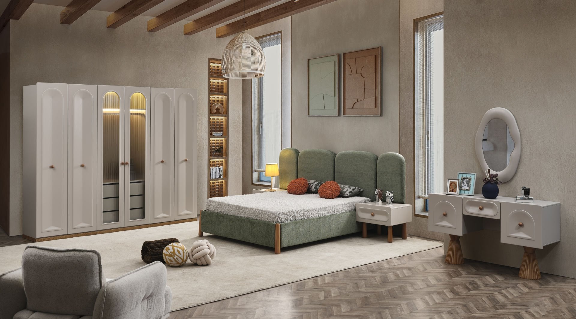 - Prenses Yatak Odası Takımı, 6 Kapılı Dolap, Şifonyer, Bazasız karyola başlık ve 2 adet Komodin'den oluşmaktadır.
