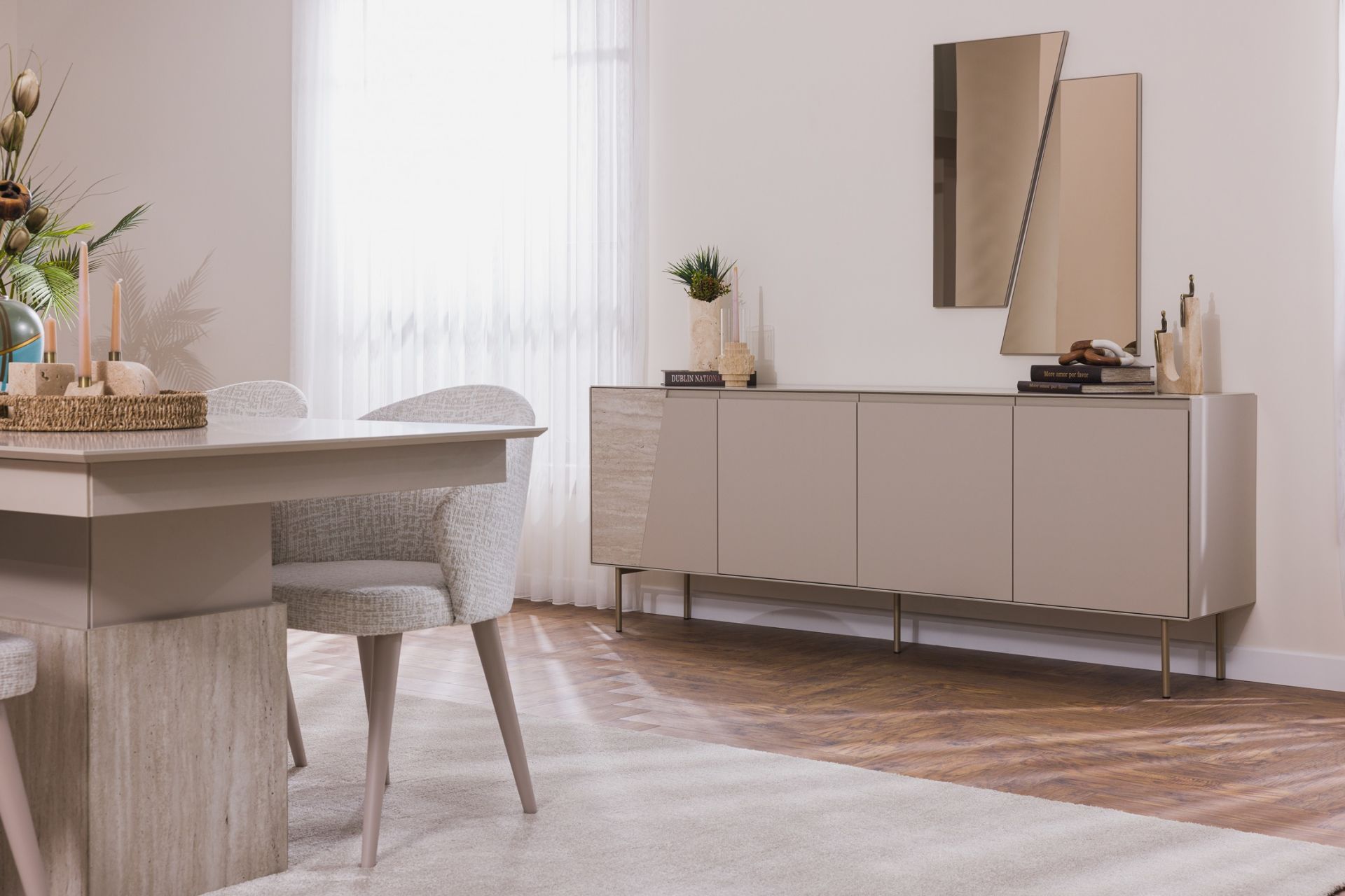 - Rams yemek odası içeriği: 1 Adet Konsol+aynası, 1 Adet Masa, 6 Adet Sandalye den oluşmaktadır.