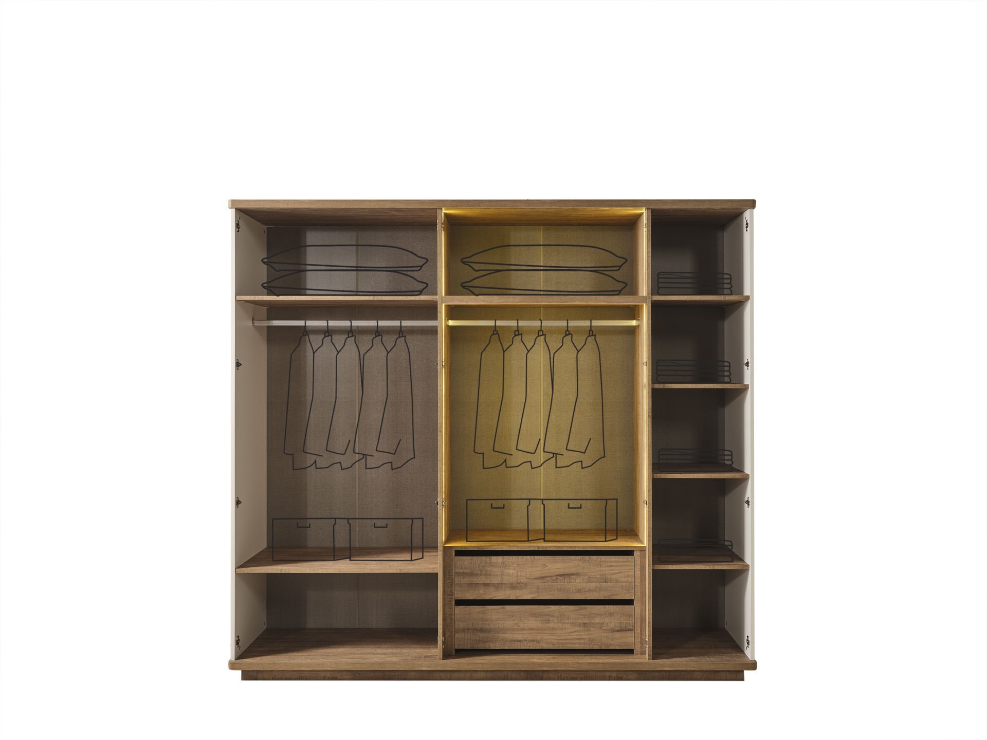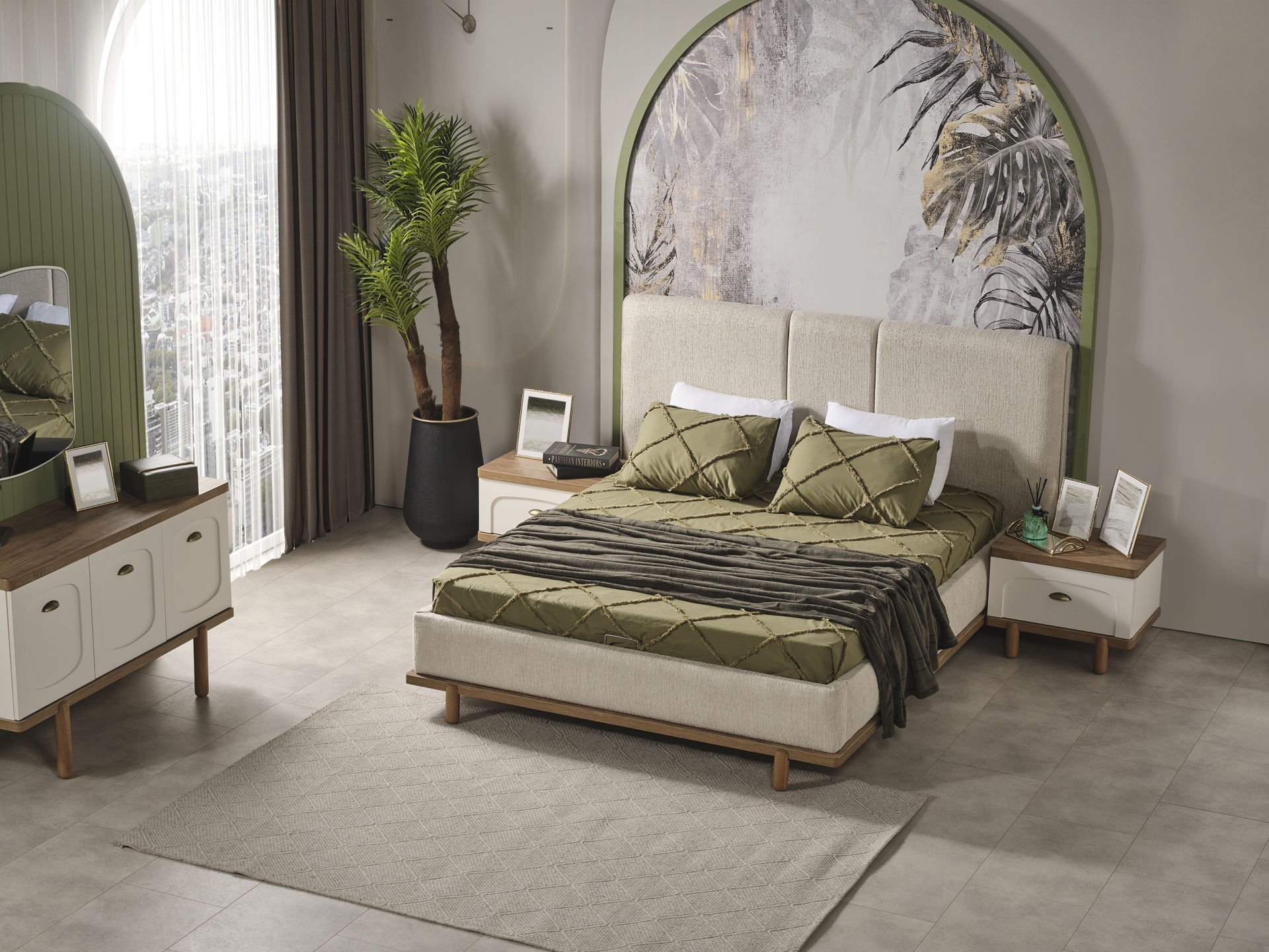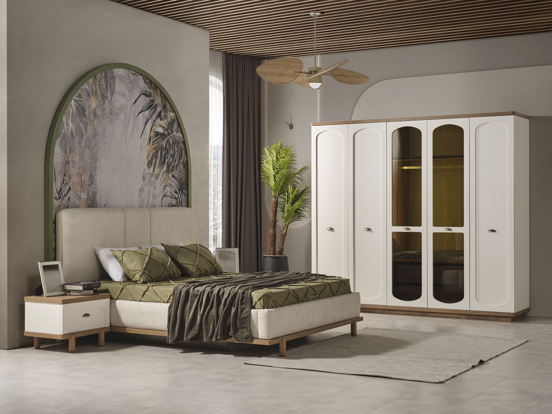 - Rigel Yatak Odası Takımı, 5 Kapılı Dolap, Şifonyer, Bazasız karyola başlık ve 2 adet Komodin'den oluşmaktadır.