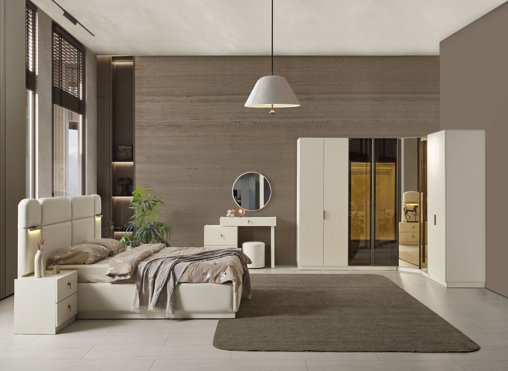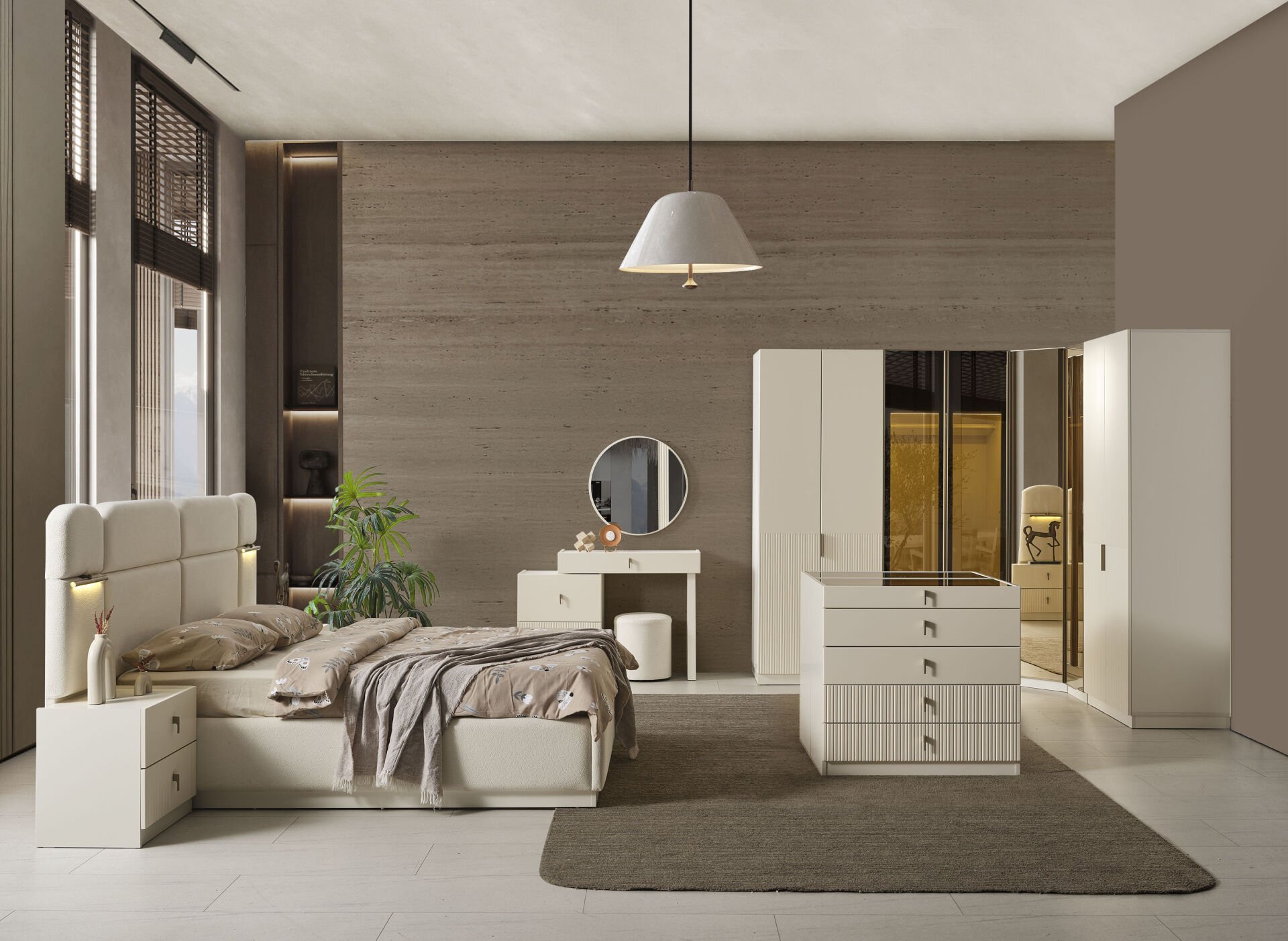 Roza Köşe Dolaplı Yatak Odası