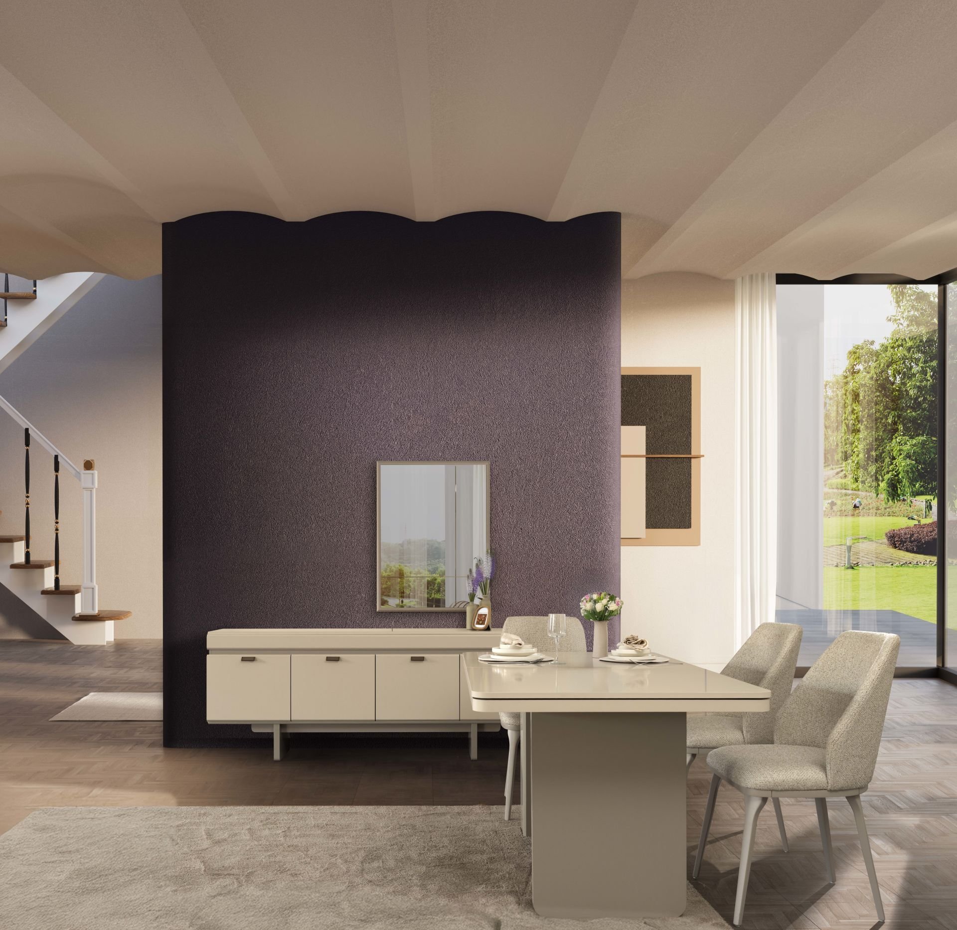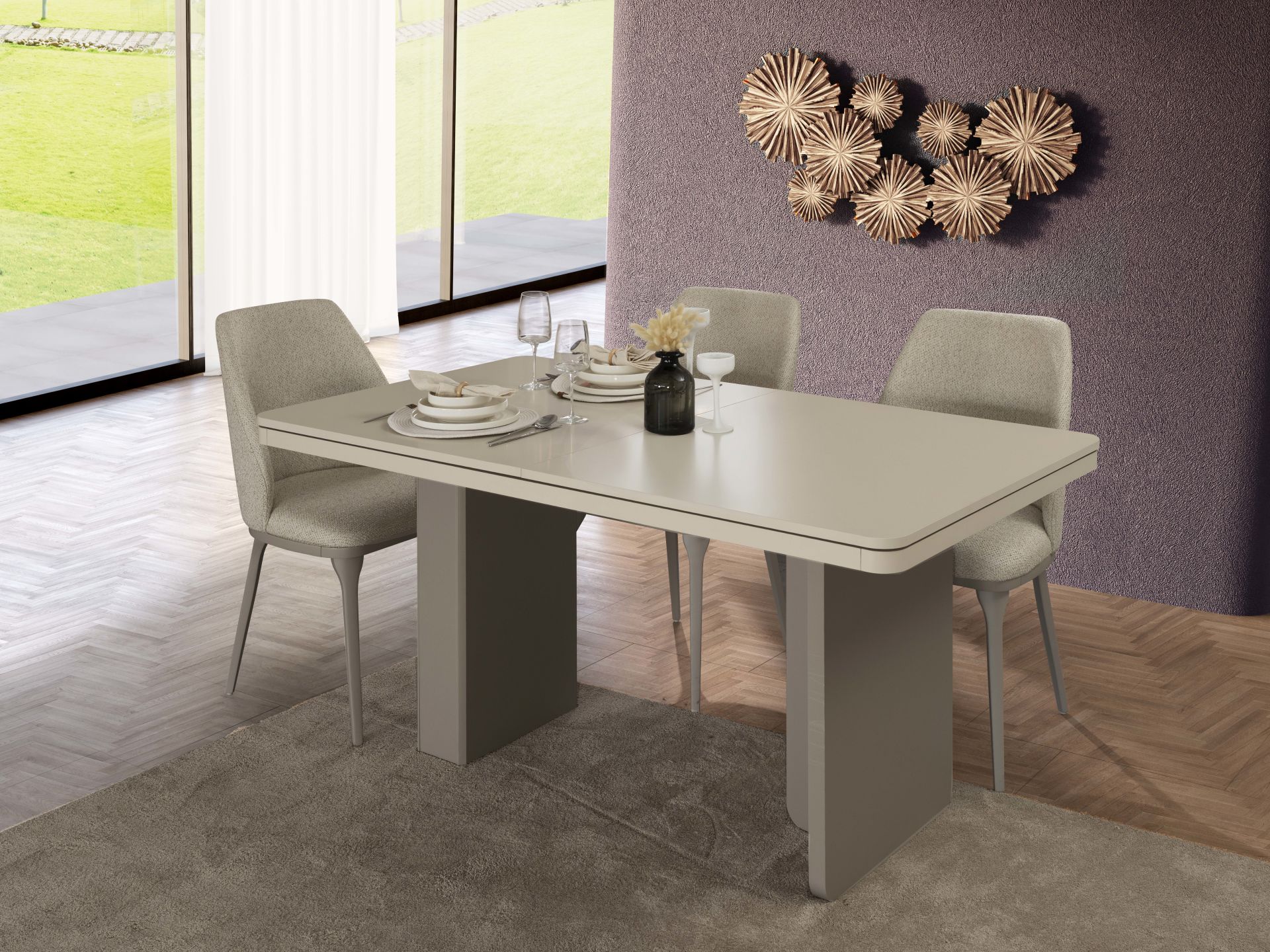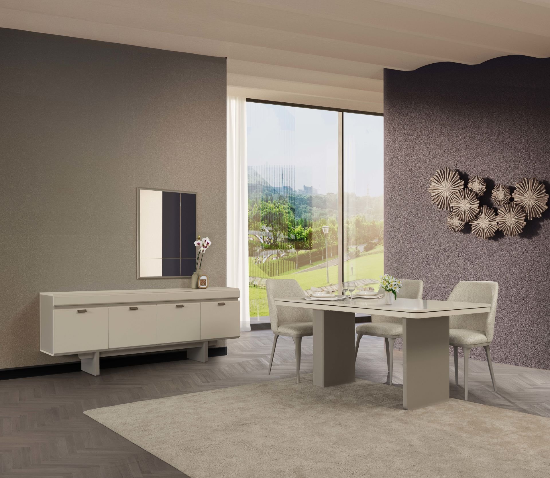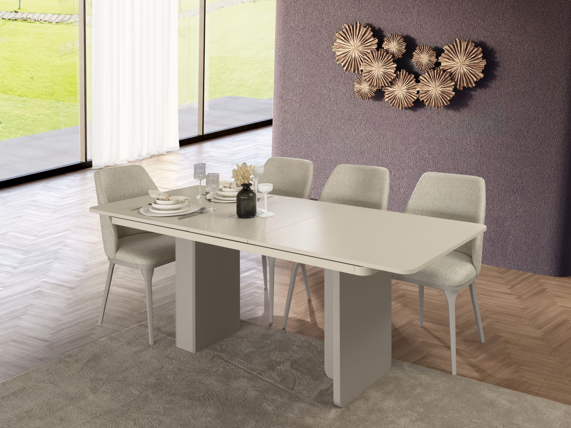 - Soft Yemek Odası Takımı, Konsol + Ayna,Yemek Masası 6 adet Stock Sandalyeden oluşmaktadır.