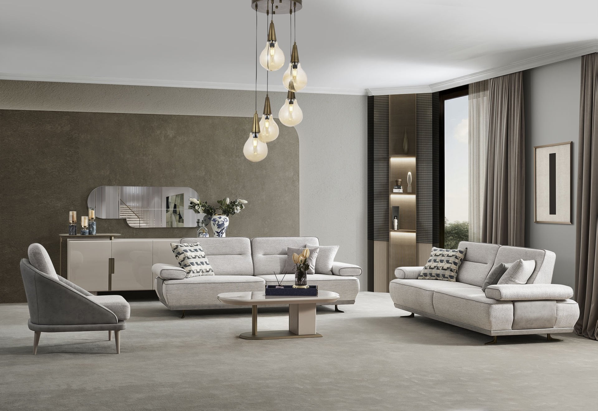 - Sueno Koltuk Takımı içeriği, 2 adet 3'lü kanepe ve 1 Adet berjer'den oluşmaktadır.