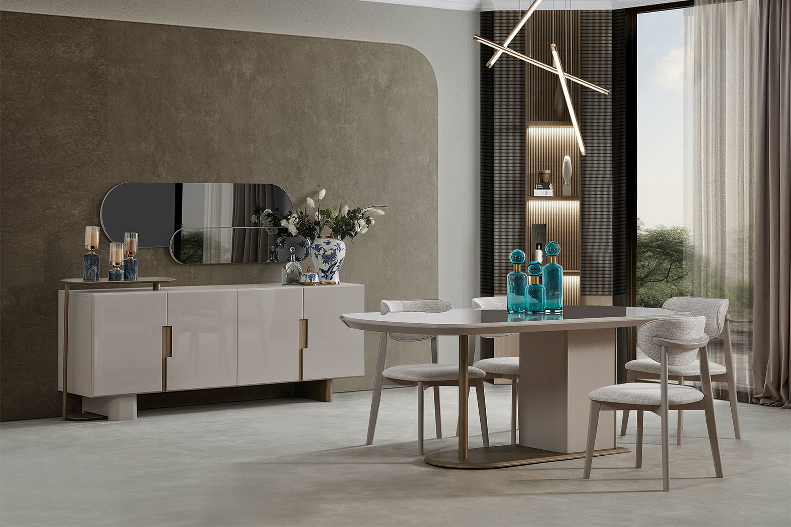 - Sueno Yemek Odası Takımı, Konsol, Yemek Masası ve 6 adet sandalye den oluşmaktadır.